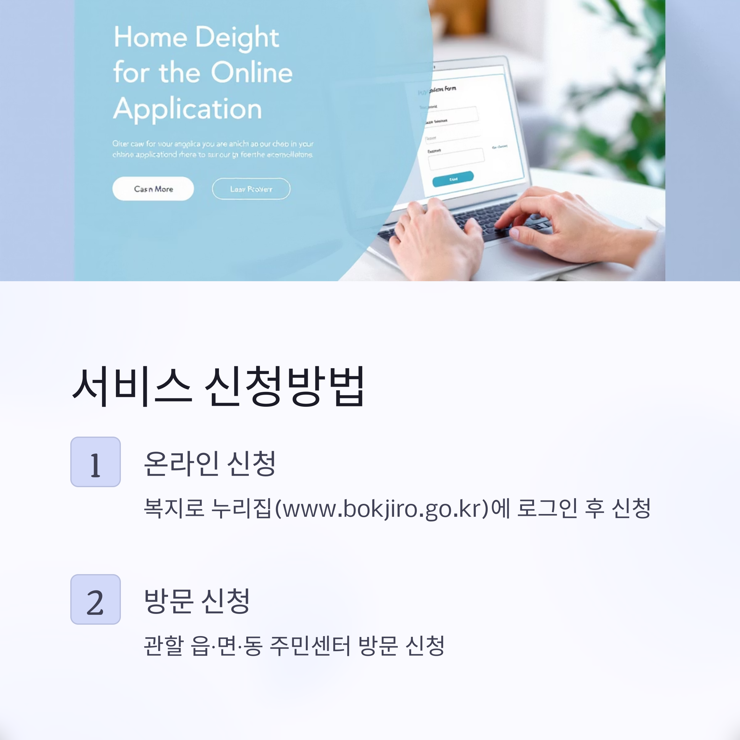 복지로 누리집(www.bokjiro.go.kr)에 로그인 후 직접 신청 가능합니다.