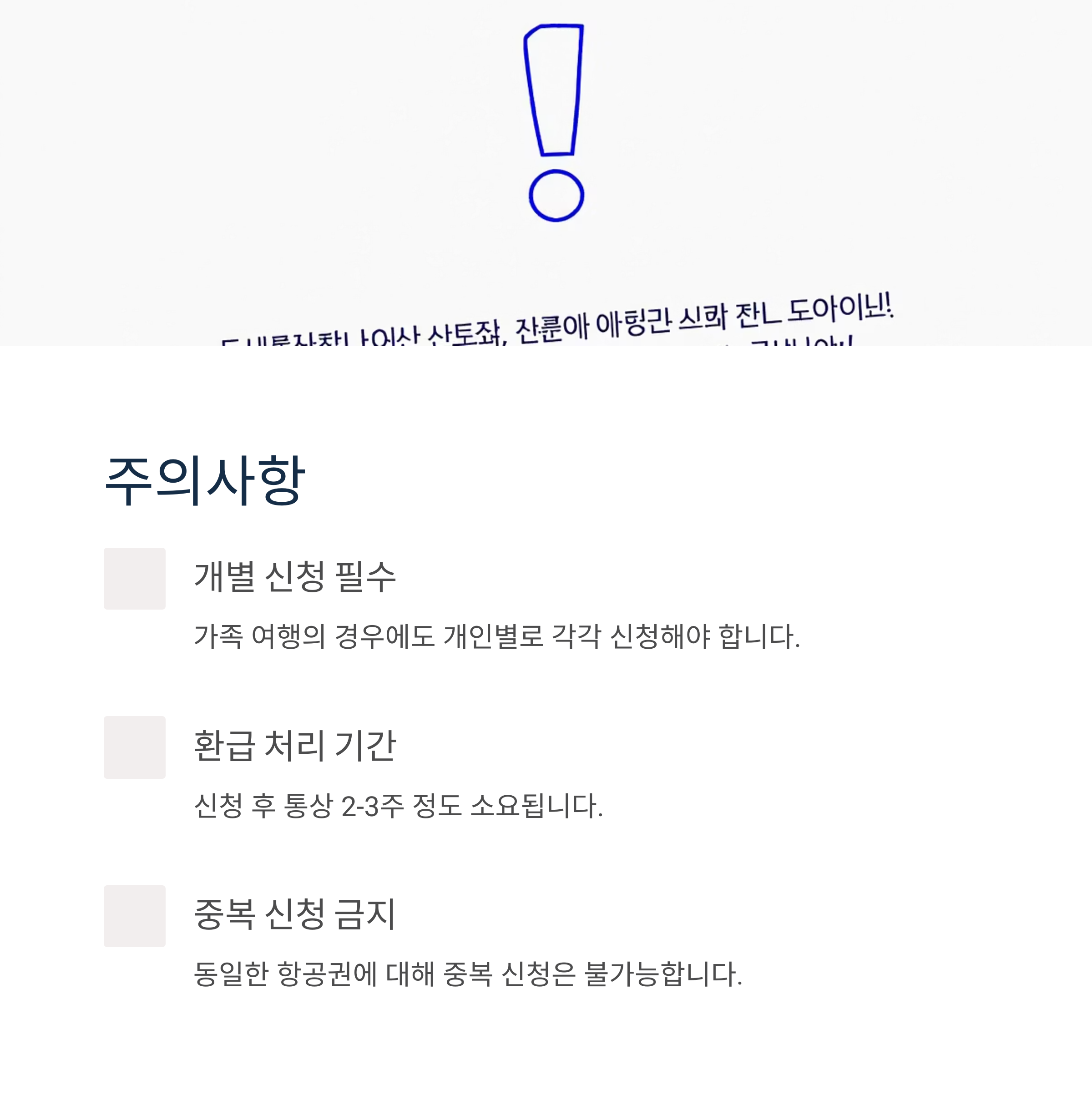 동일한 항공권에 대해 중복 신청은 불가능하니 주의하시기 바랍니다.