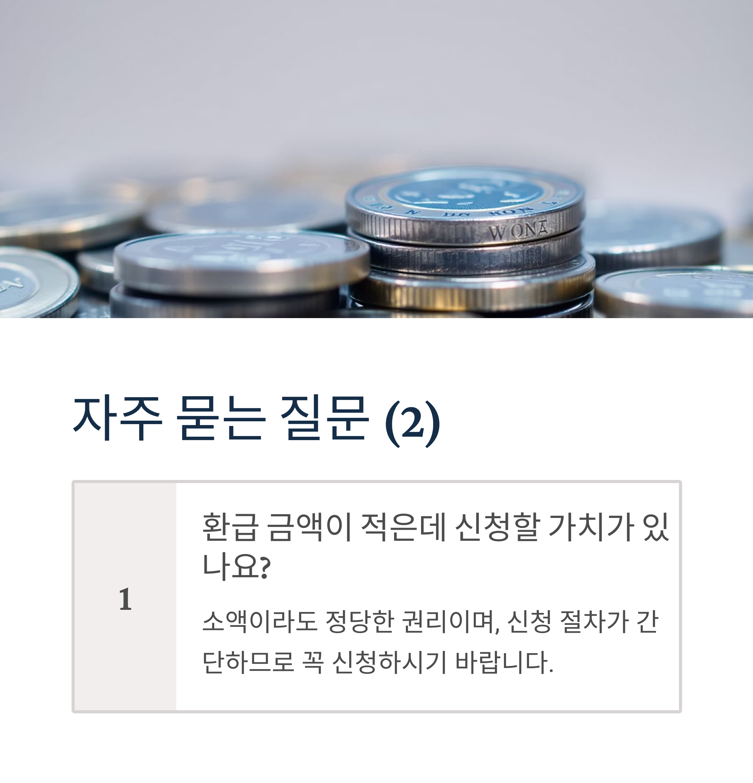 A: 소액이라도 정당한 권리이며, 신청 절차가 간단하므로 꼭 신청하시기 바랍니다.