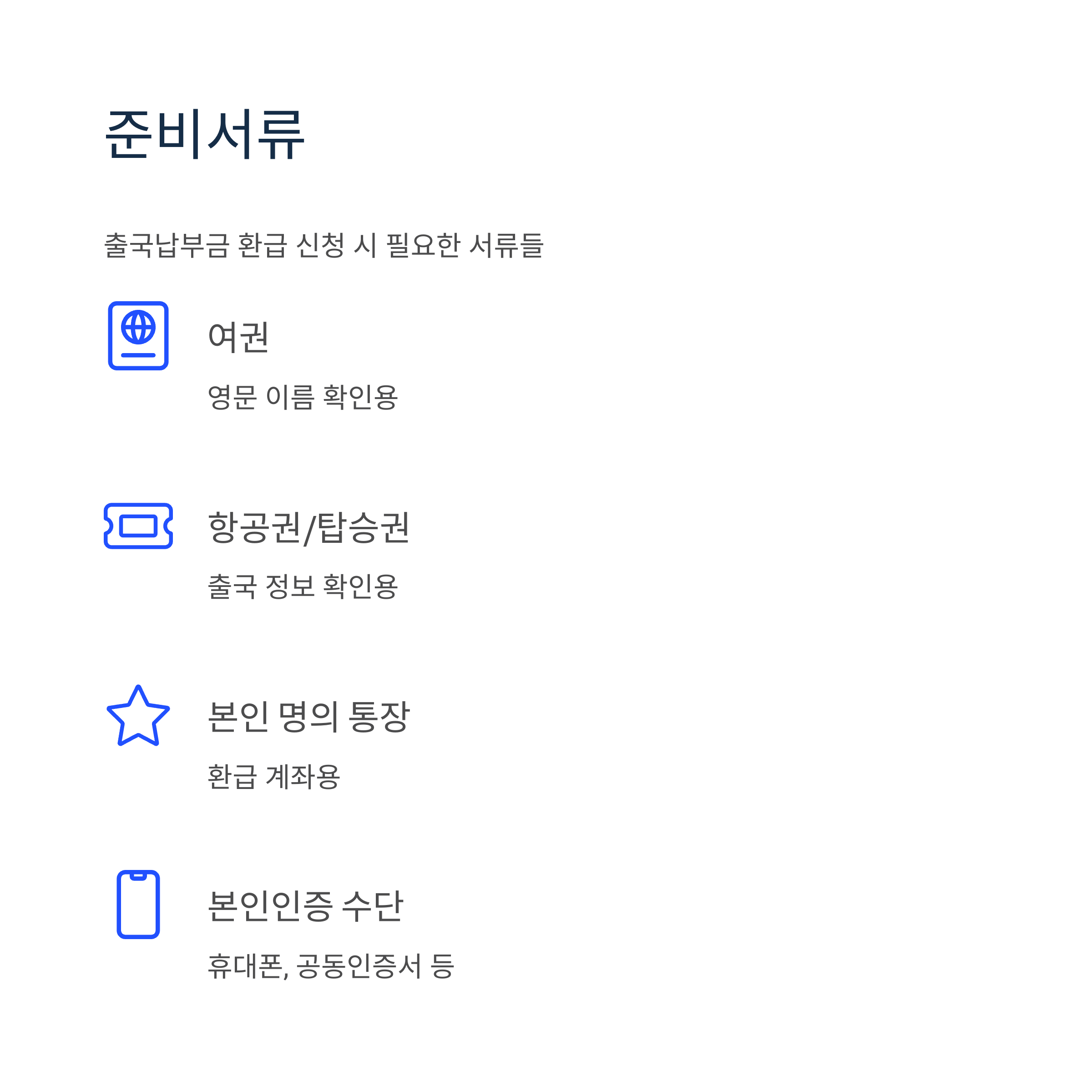 출국납부금 환급 신청 시 다음 서류가 필요합니다: