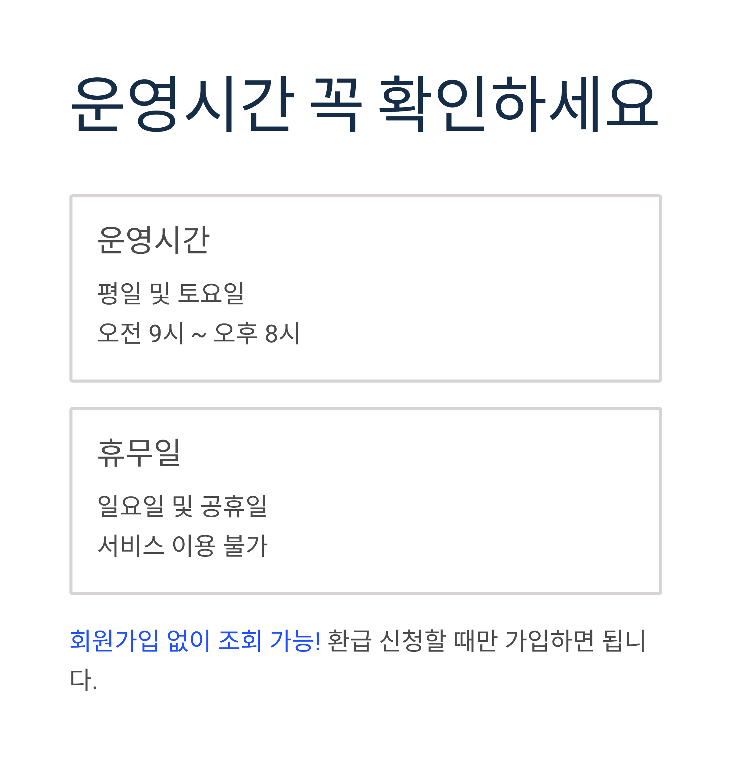 - 회원가입 없이 조회 가능, 환급 신청 시에만 회원가입 필요
