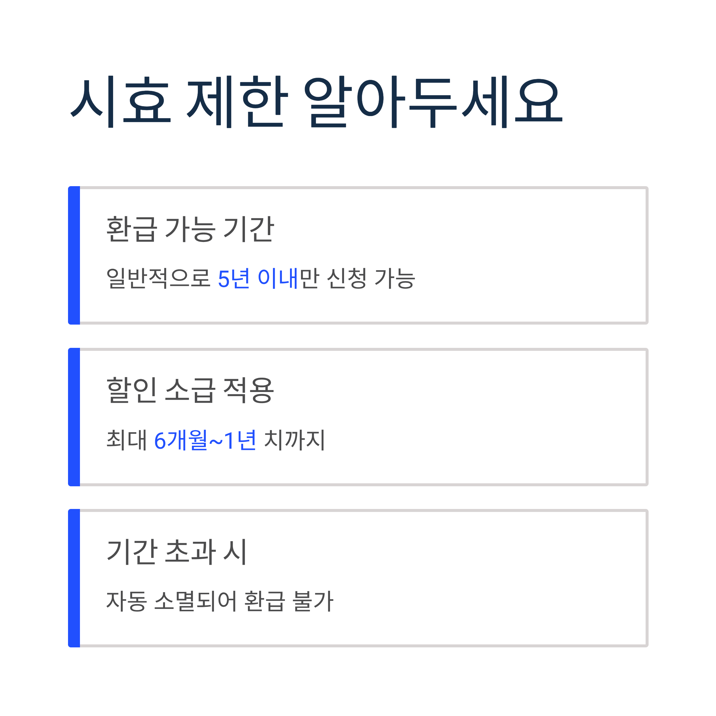 - 기간 초과 시: 자동 소멸되어 환급 불가