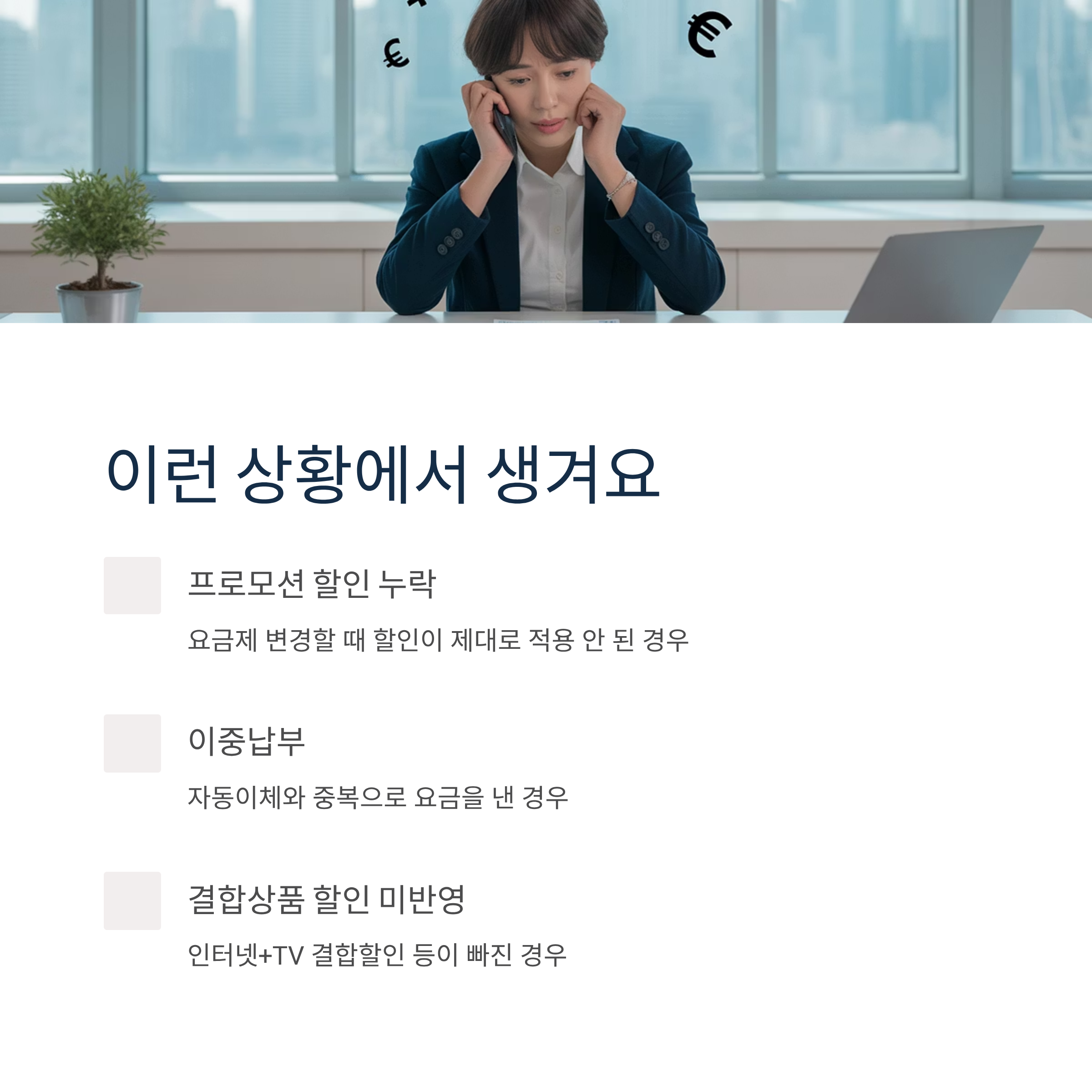 - 할인조건 미반영: 결합상품 할인 등이 누락된 경우