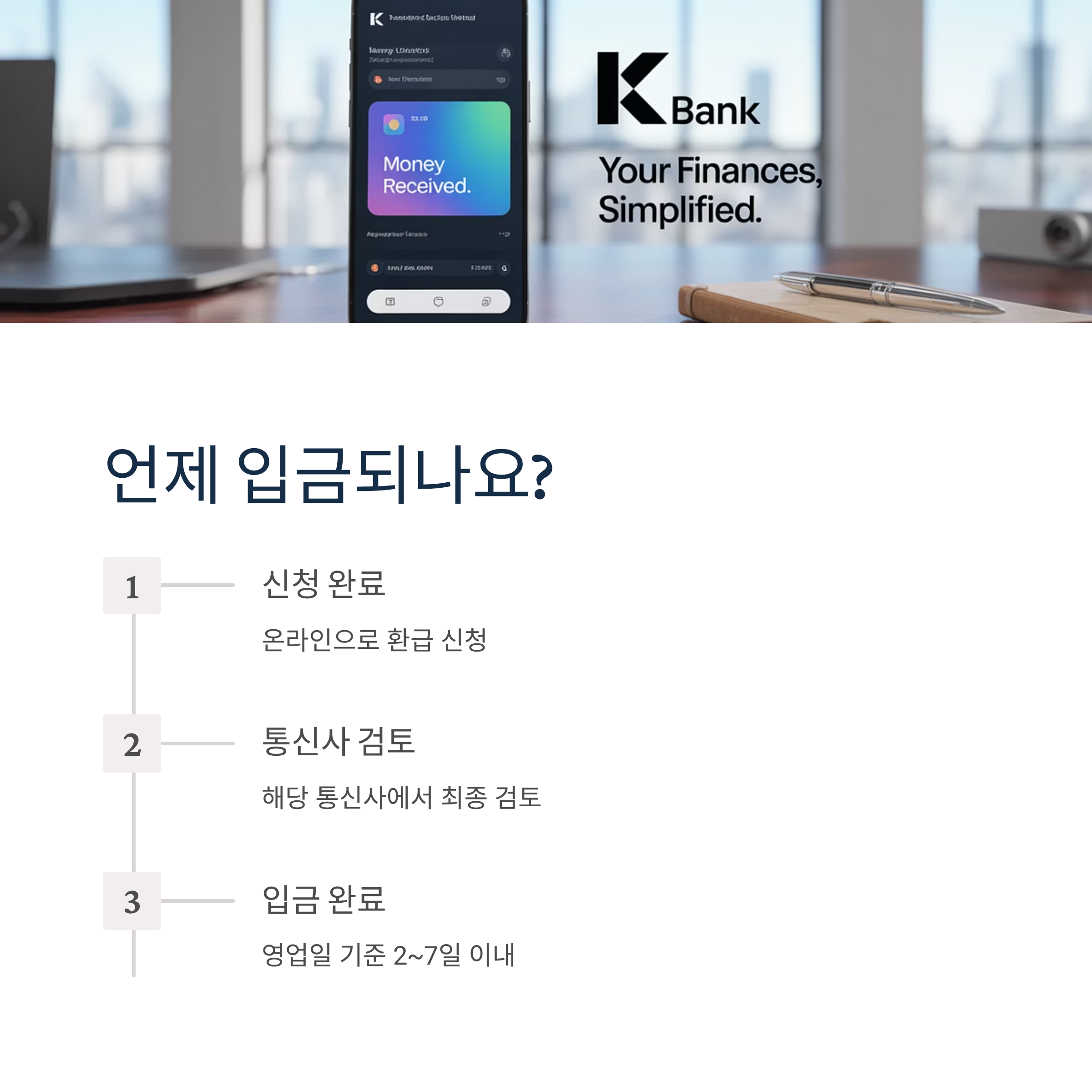 - 처리기간: 신청 후 영업일 기준 2~7일 이내 입금