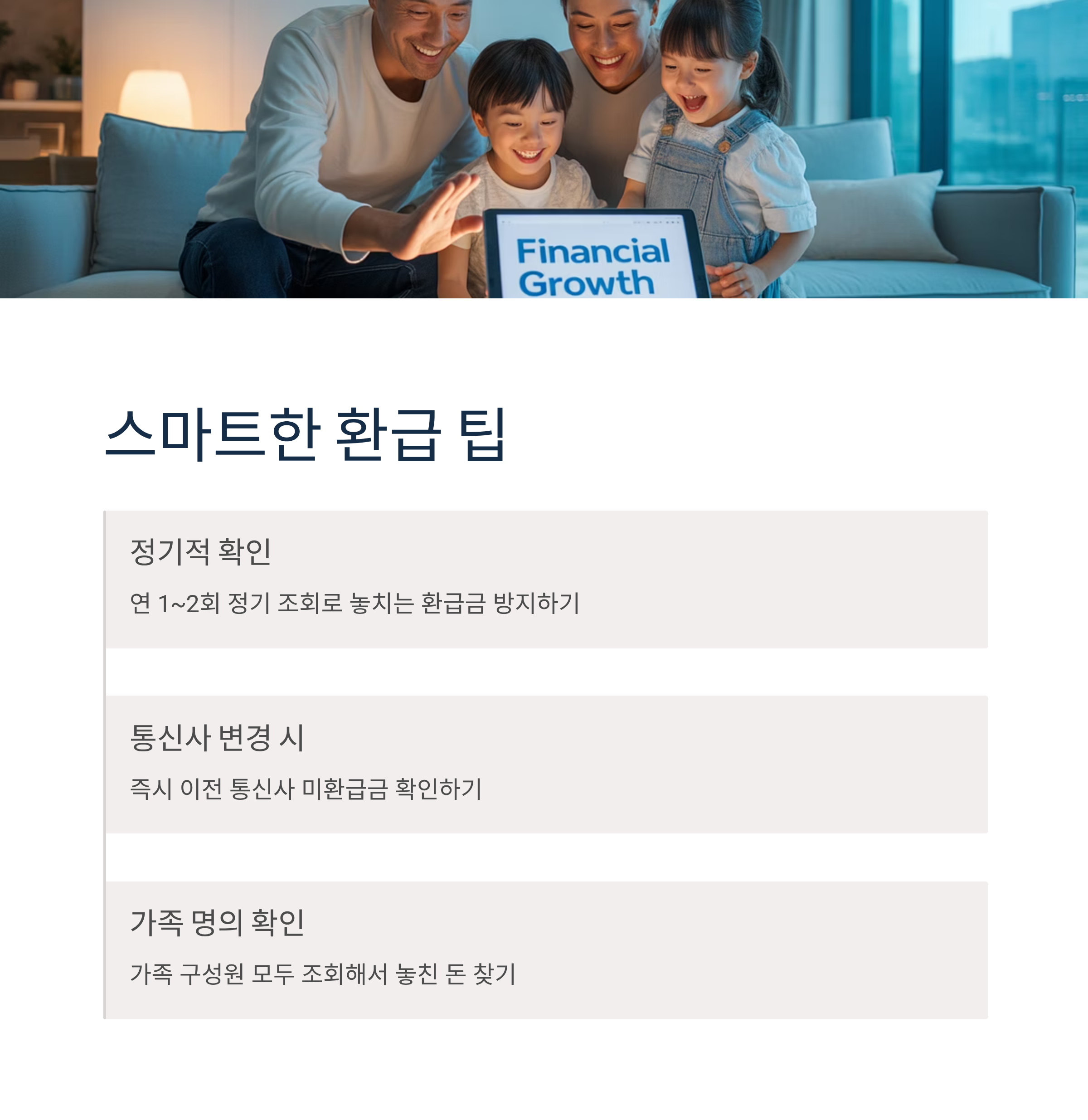 - 연 1~2회 정기 조회: 놓치는 환급금 방지