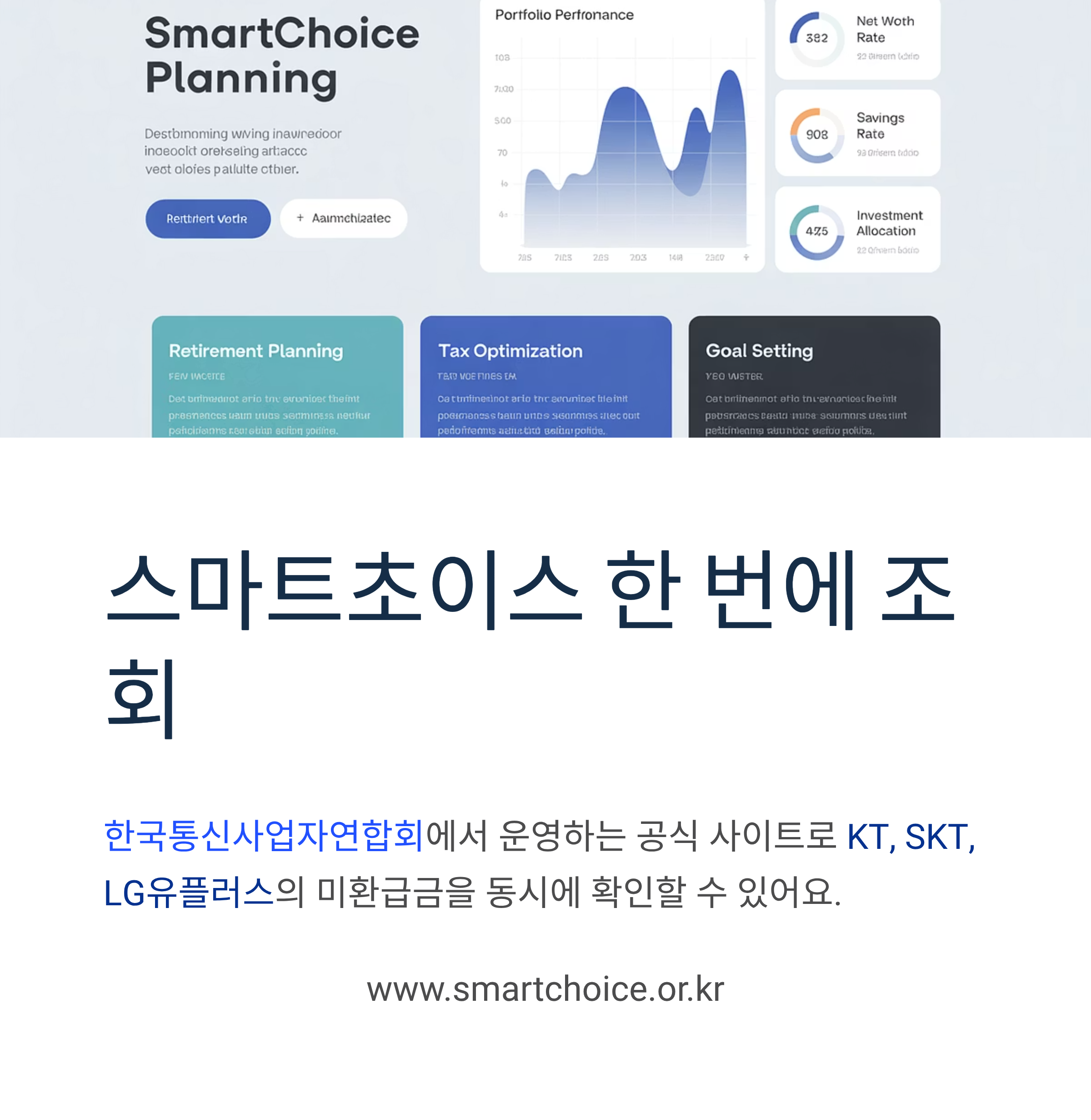 가장 간편한 방법은 스마트초이스를 이용하는 것입니다. 한국통신사업자연합회(KTOA)에서 운영하는 공식 사이트로, KT, SK텔레콤, LG U+, SK브로드밴드의 미환급금을 한 번에 확인할 수 있습니다.