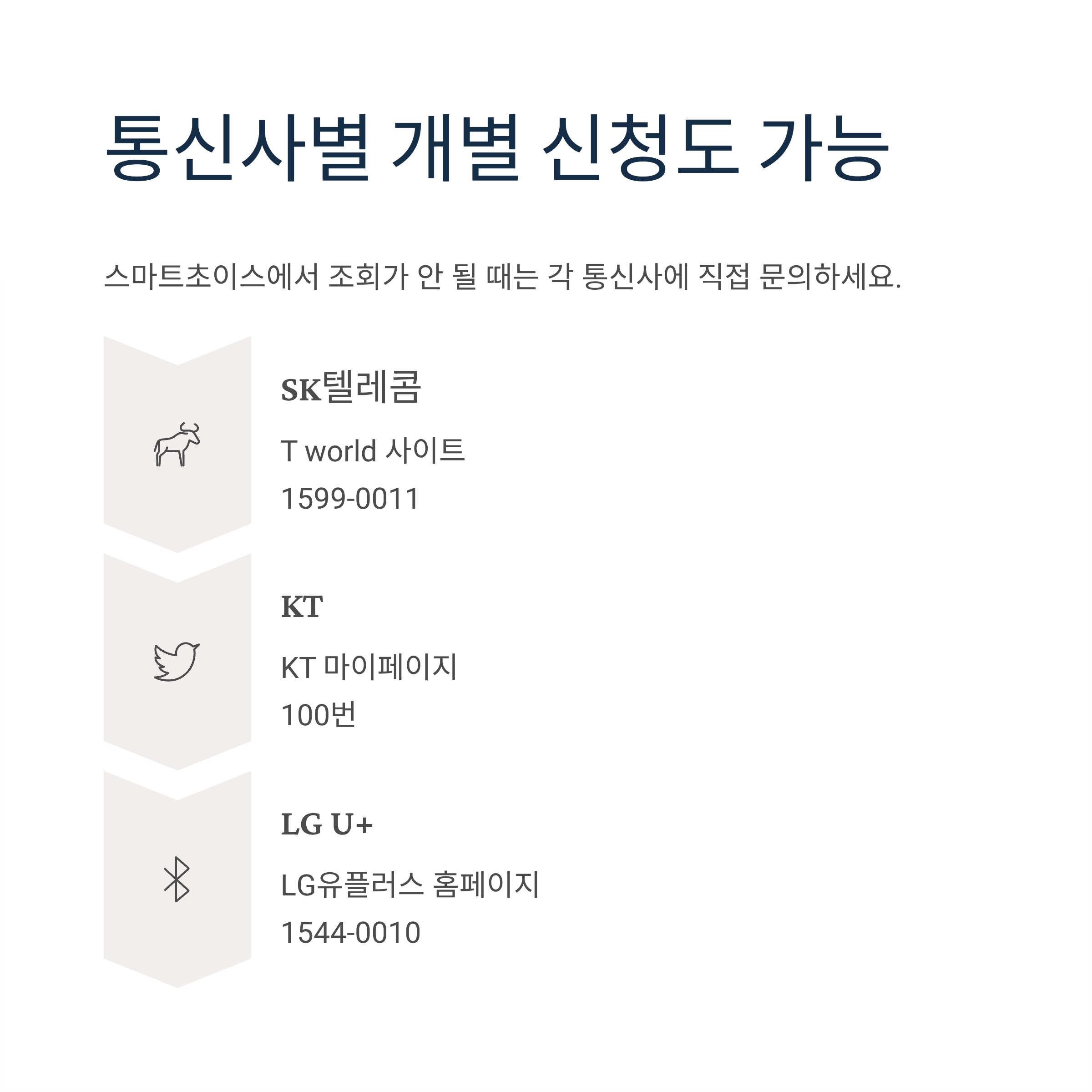 스마트초이스에서 조회되지 않는 경우 각 통신사에 직접 문의할 수 있습니다.