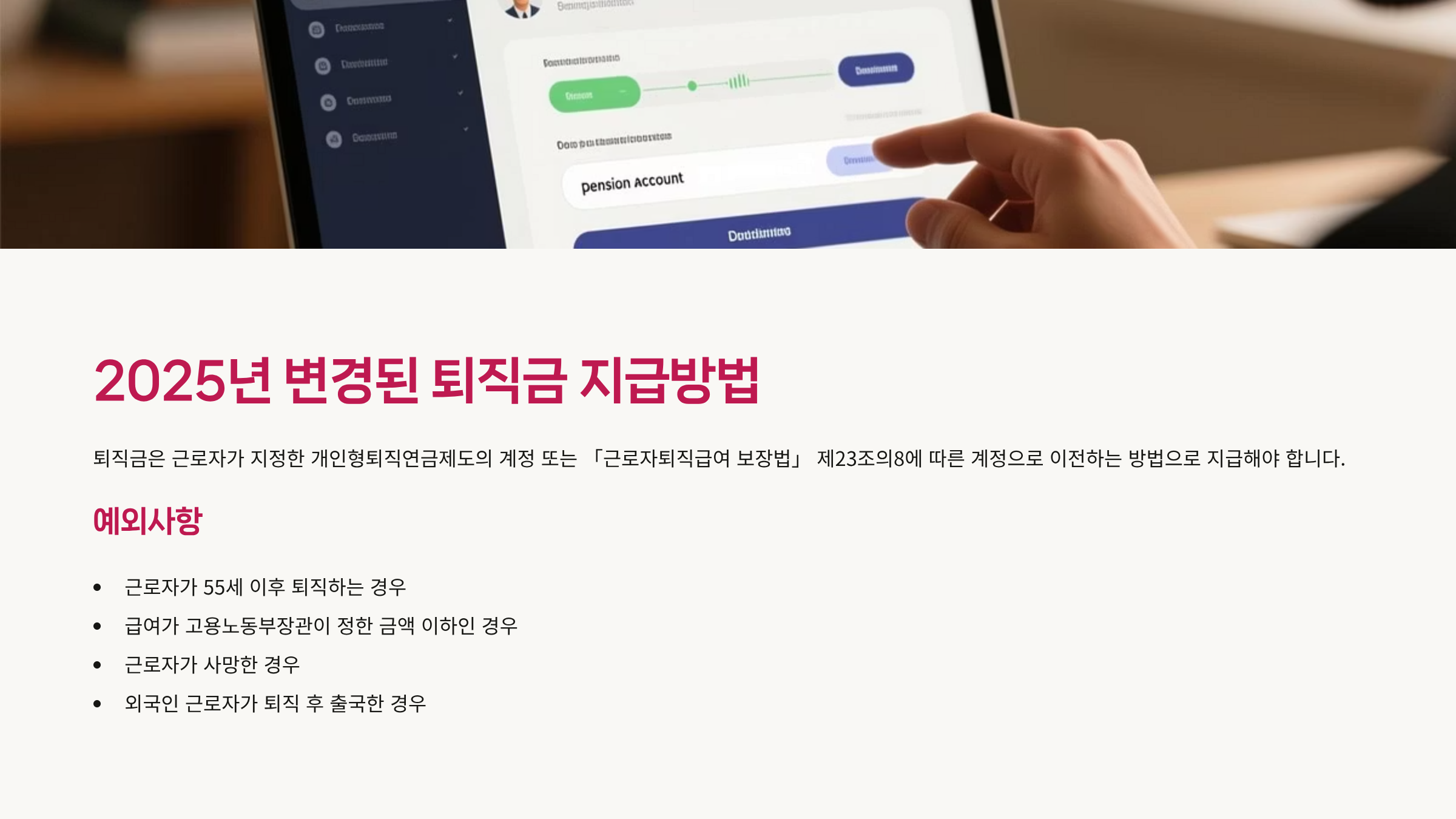 - 근로자가 55세 이후 퇴직하는 경우