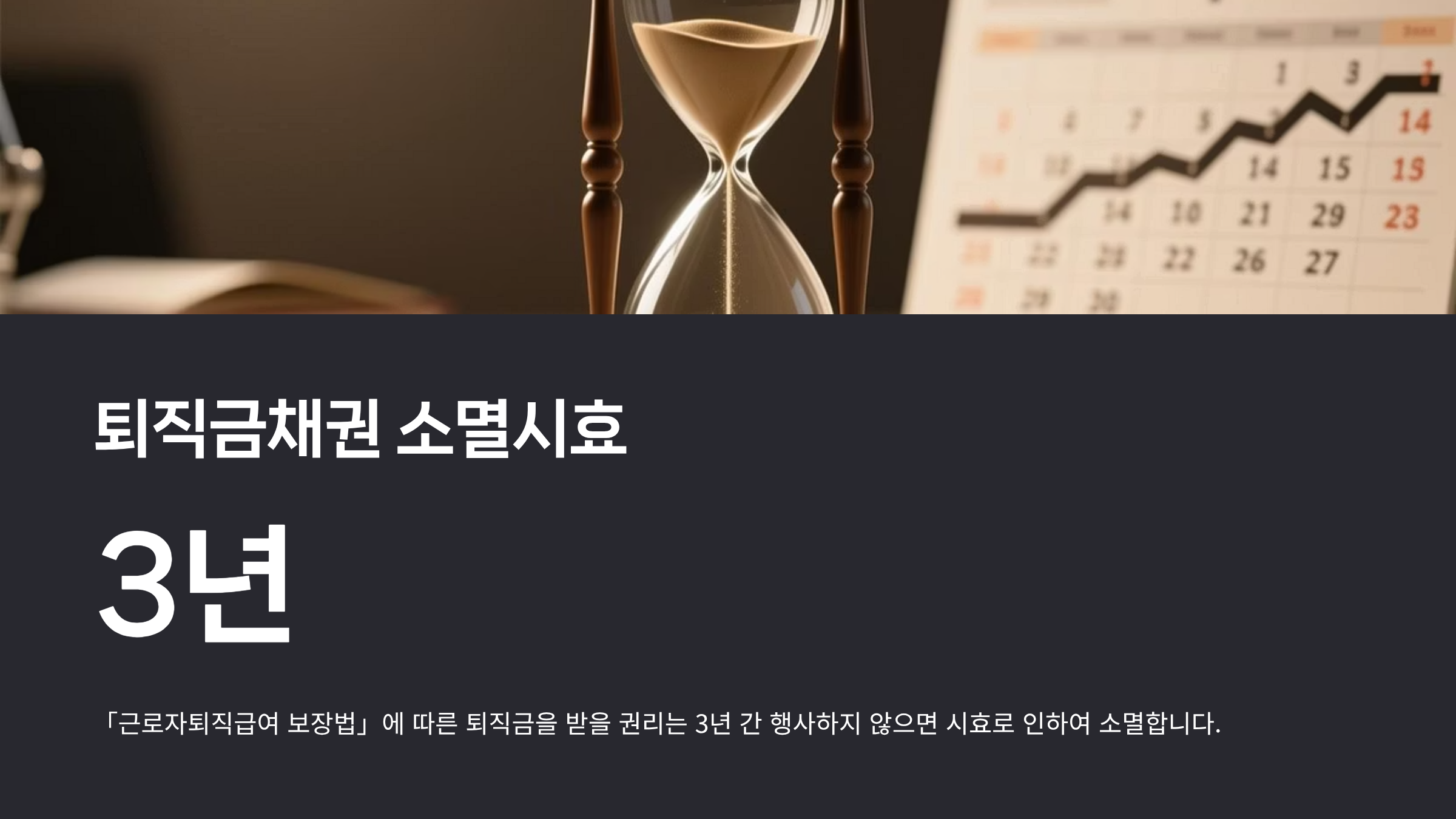 「근로자퇴직급여 보장법」에 따른 퇴직금을 받을 권리는 3년 간 행사하지 않으면 시효로 인하여 소멸합니다.