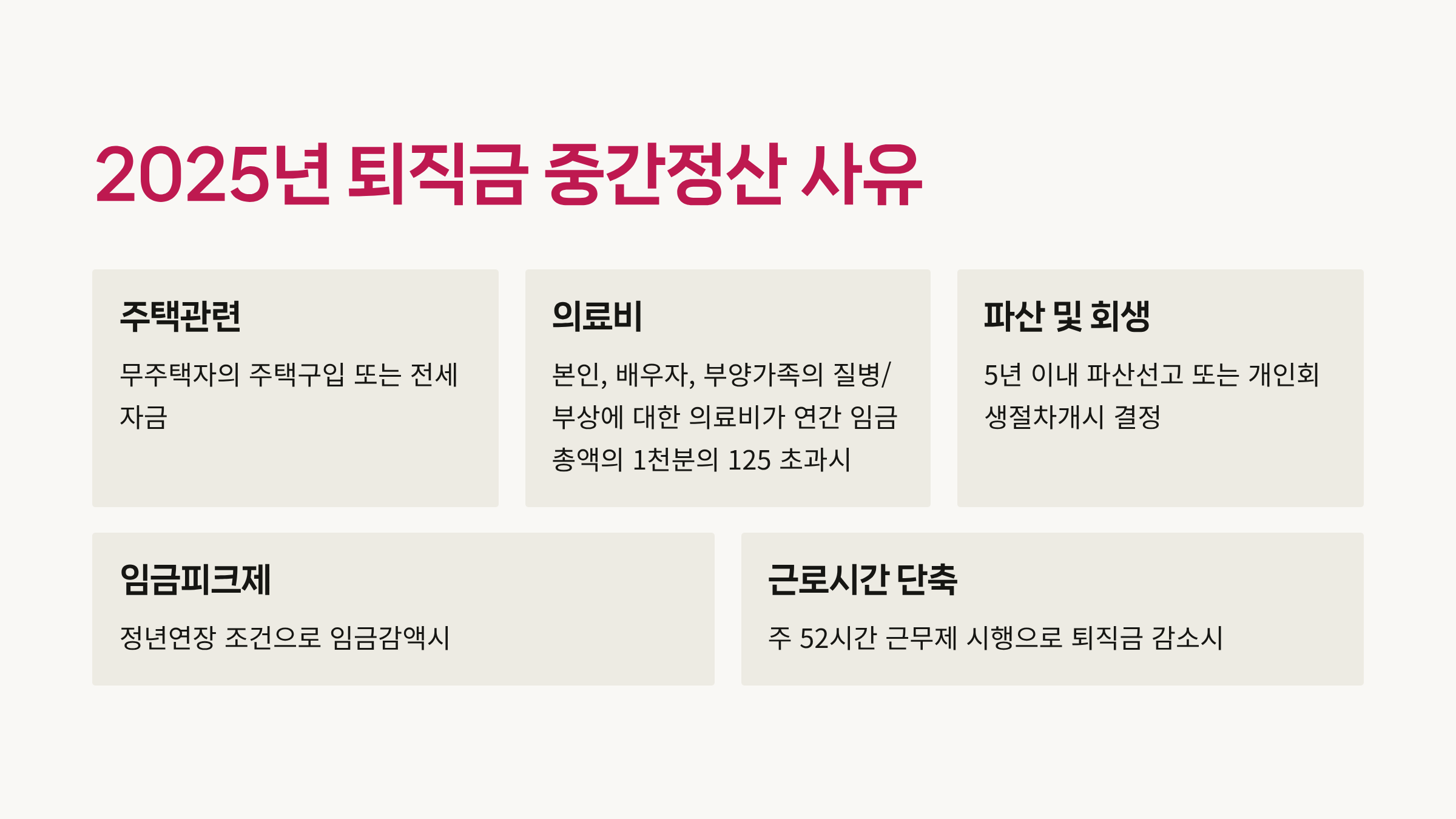 2025년 퇴직금 중간정산 사유: