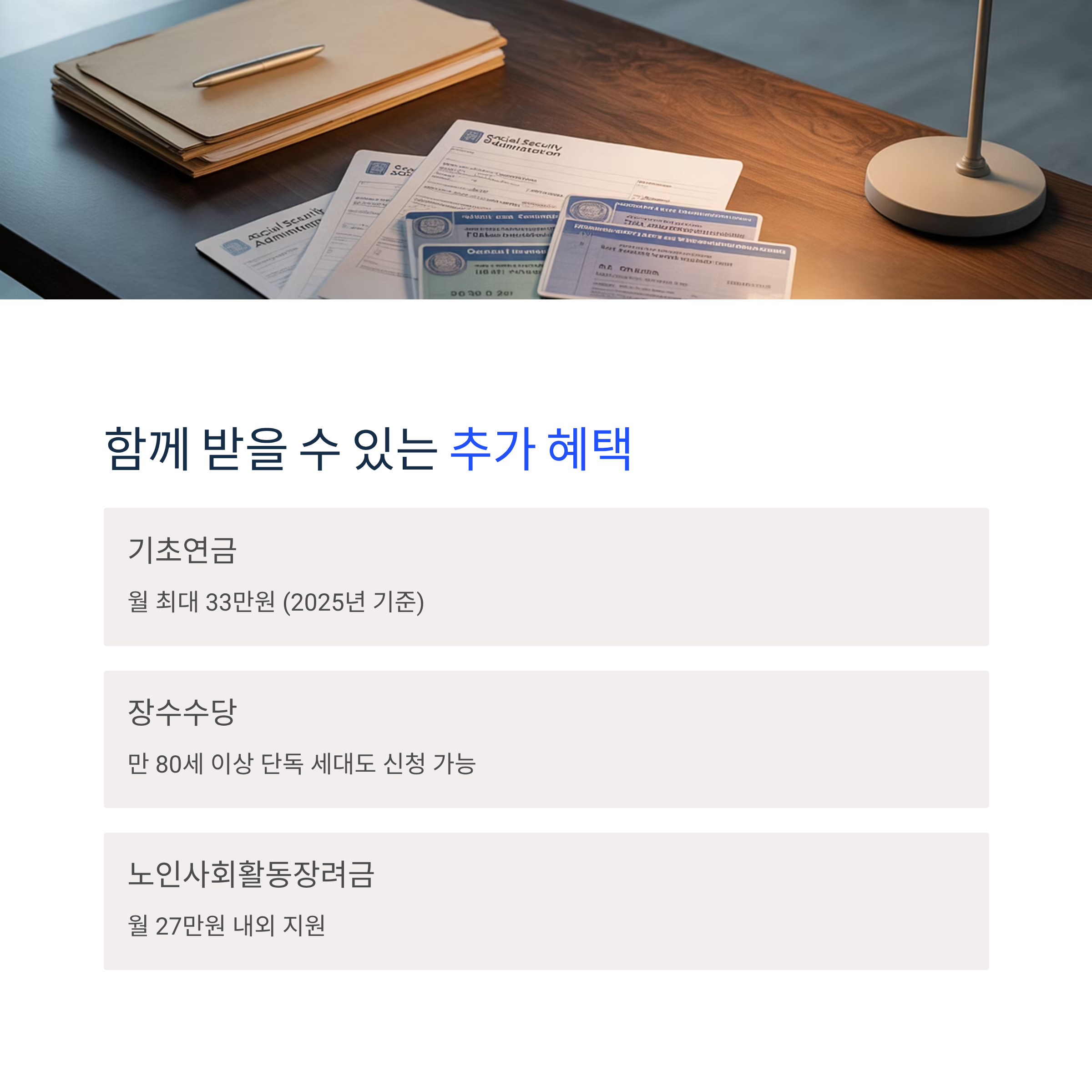 - 기초연금: 월 최대 334,810원 (2025년 기준)