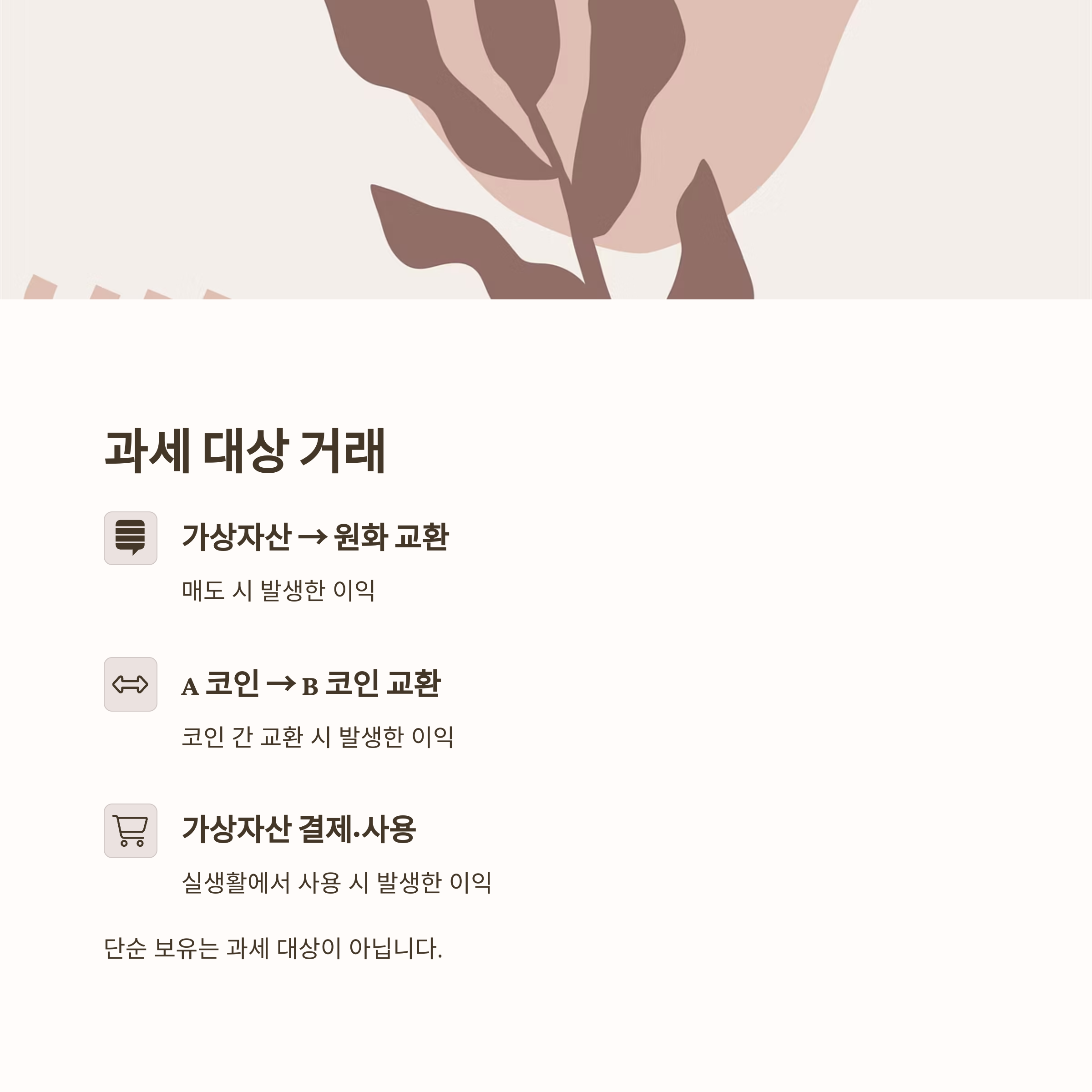 - 과세 대상: 비트코인, 이더리움 등 모든 암호화폐
