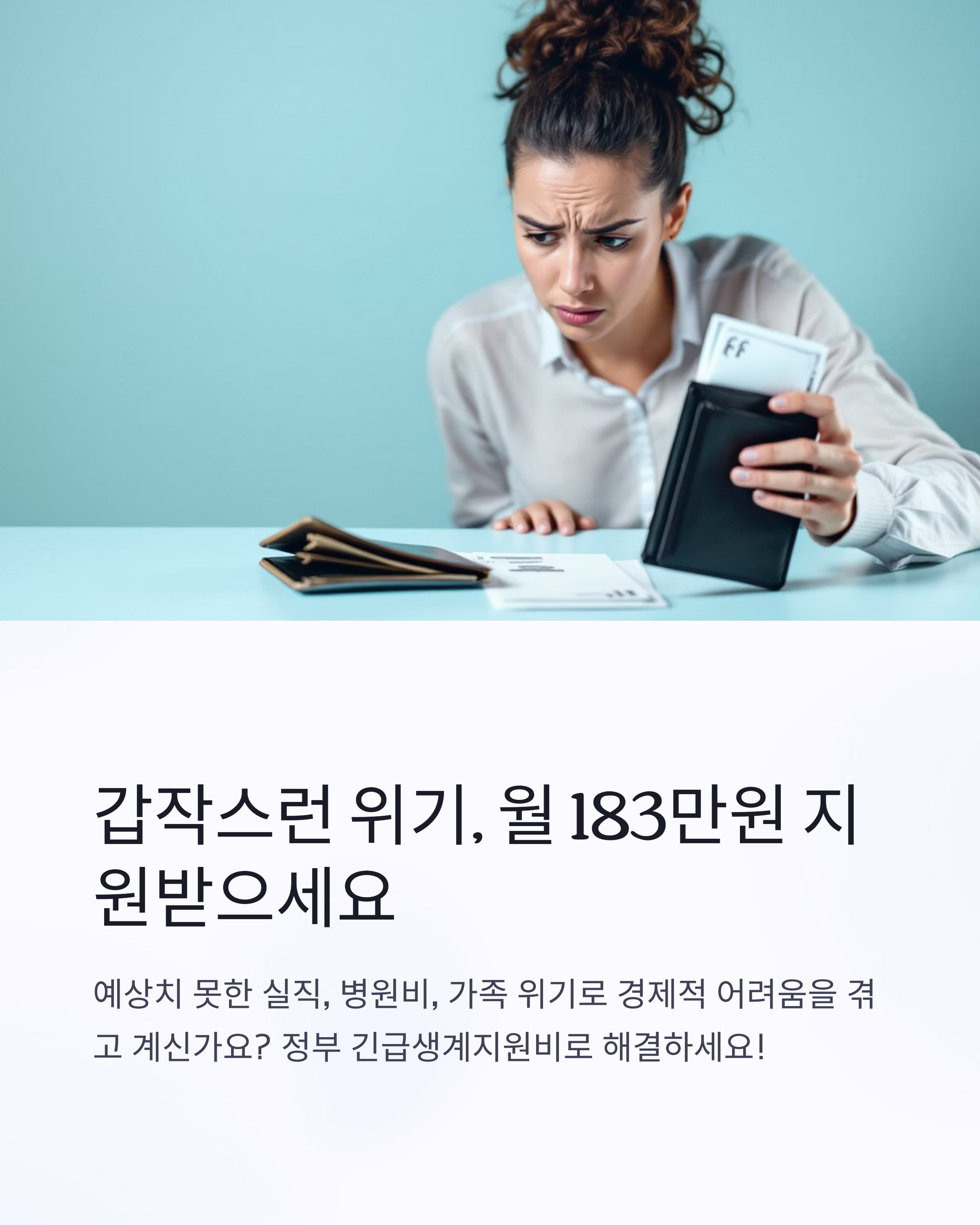 예상치 못한 실직, 병원비, 가족의 위기상황으로 인해 하루아침에 경제적 어려움에 처한 분들이 계신가요? 그렇다면 정부에서 제공하는 긴급생계지원비를 놓치지 마세요. 2025년 현재 4인가구 기준 월 166만원까지 지원받을 수 있습니다.