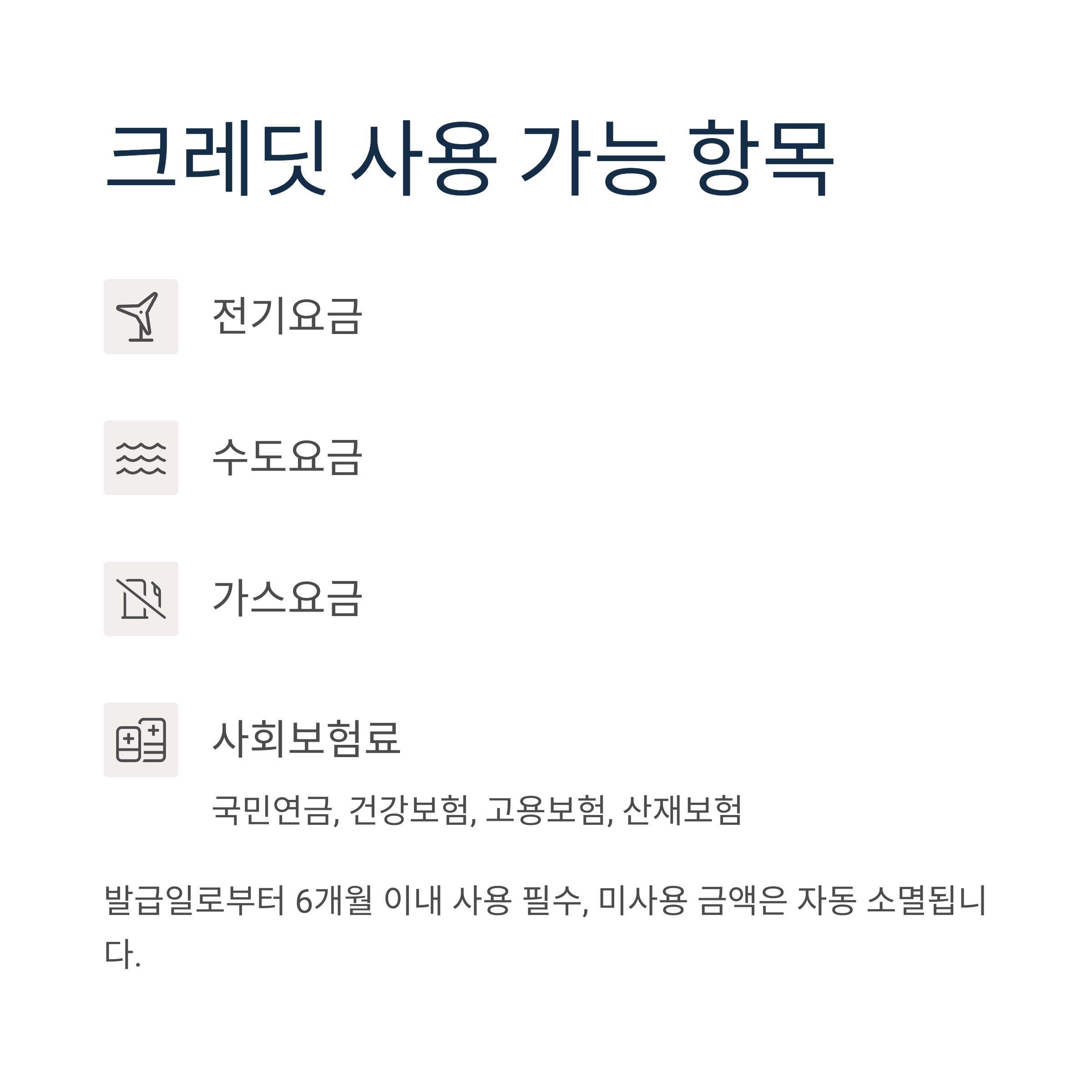 - 자동 차감 → 공과금·보험료 결제 시 자동 적용