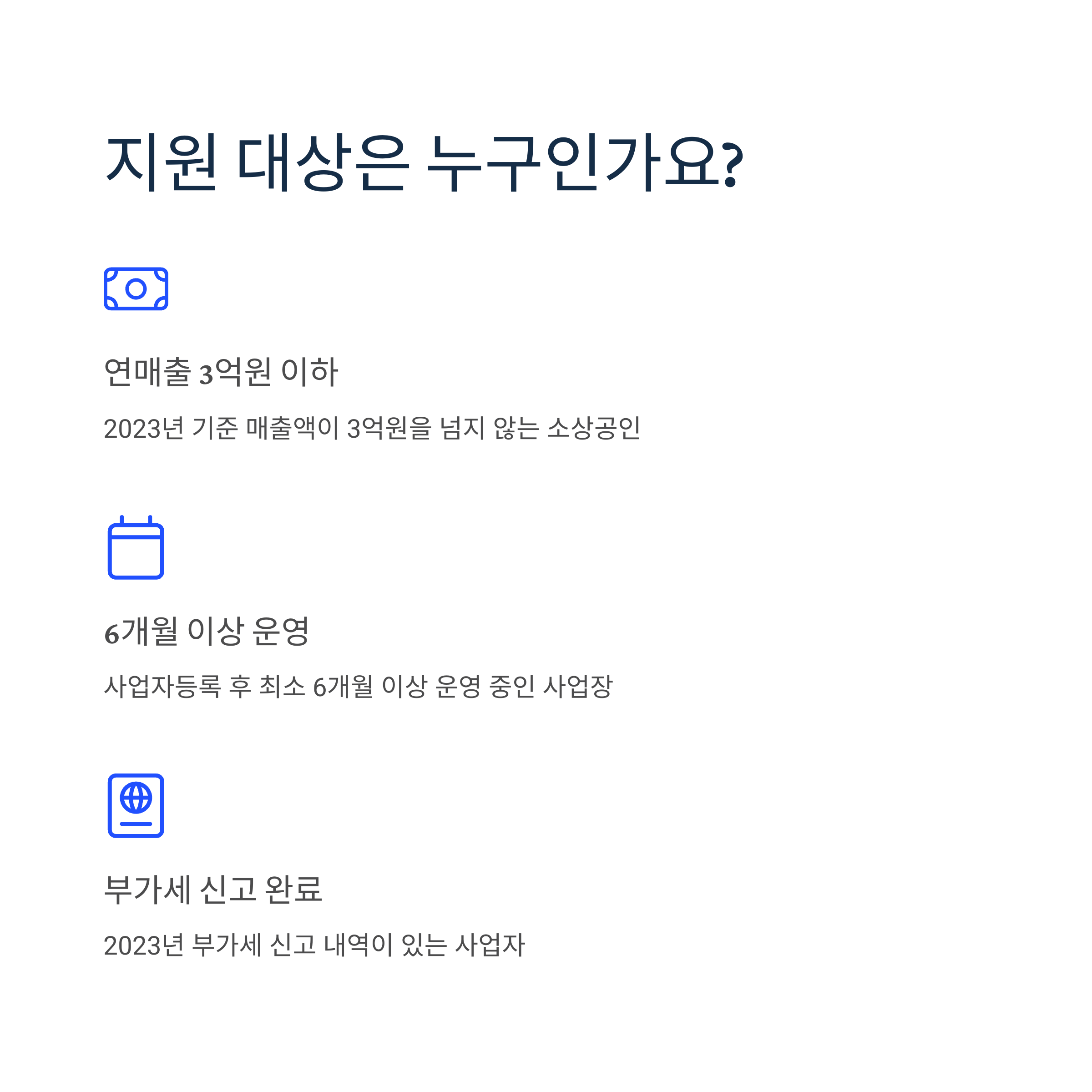 - 연매출 3억원 이하 (2023년 기준) 소상공인