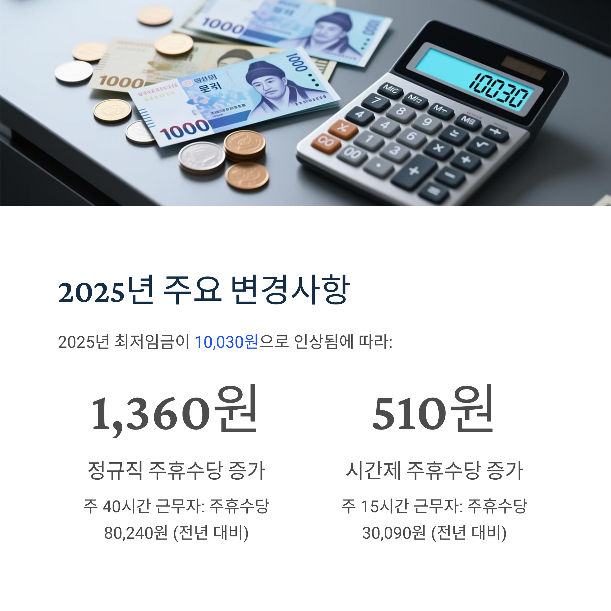 2025년 최저시급 10,030원을 기준으로 실제 계산해보겠습니다.