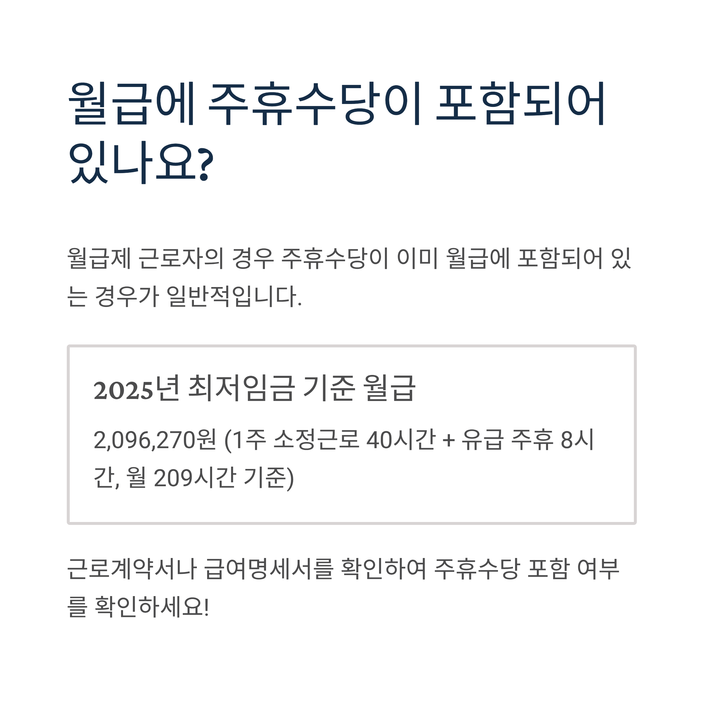 - 월급제: 월급에 주휴수당이 포함된 형태로 지급