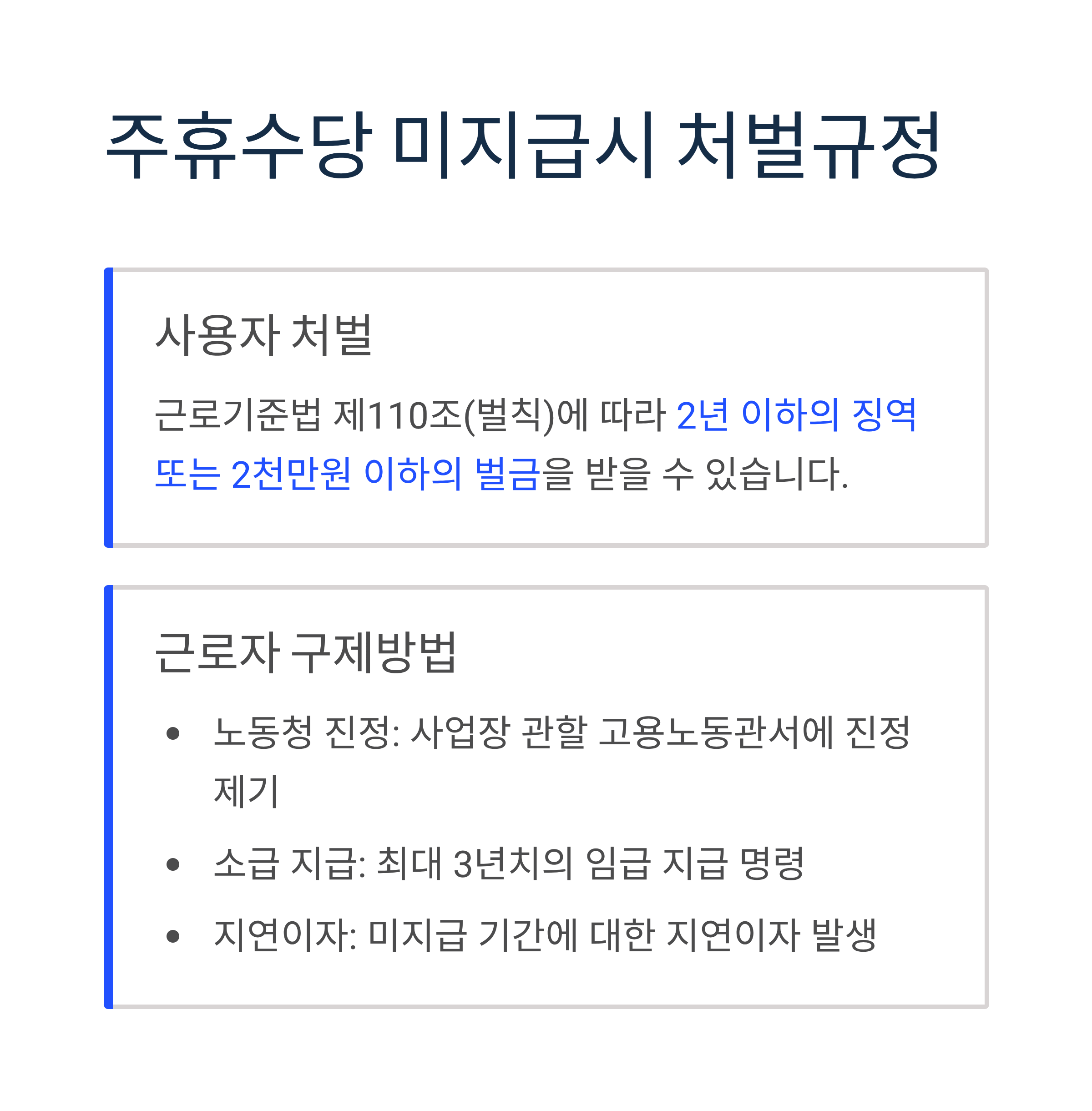 - 지연이자: 미지급 기간에 대한 지연이자 발생