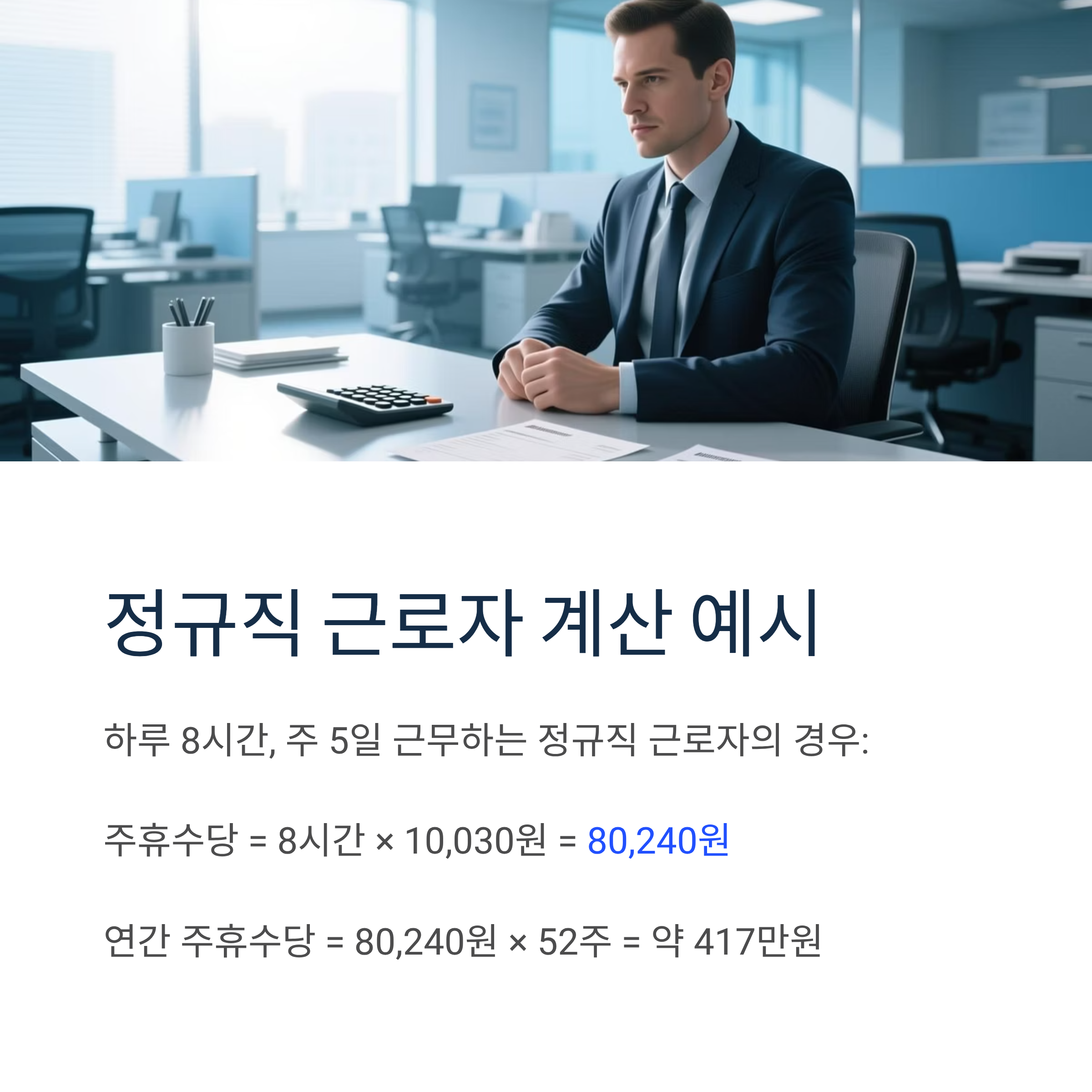 주 40시간 근무자: 주휴수당 80,240원 (전년 대비 1,360원 증가)