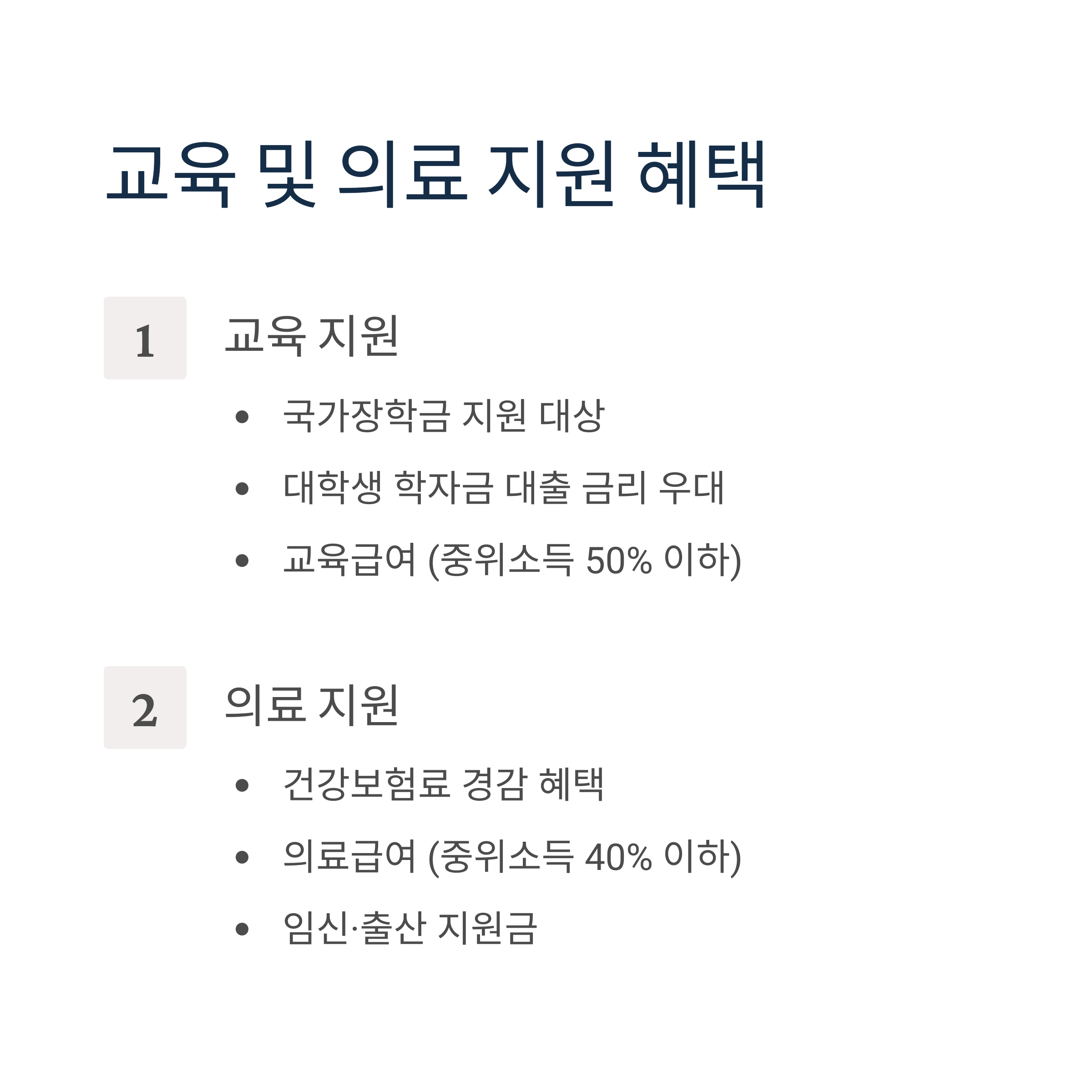 - 교육급여 수급 가능 (중위소득 50% 이하)