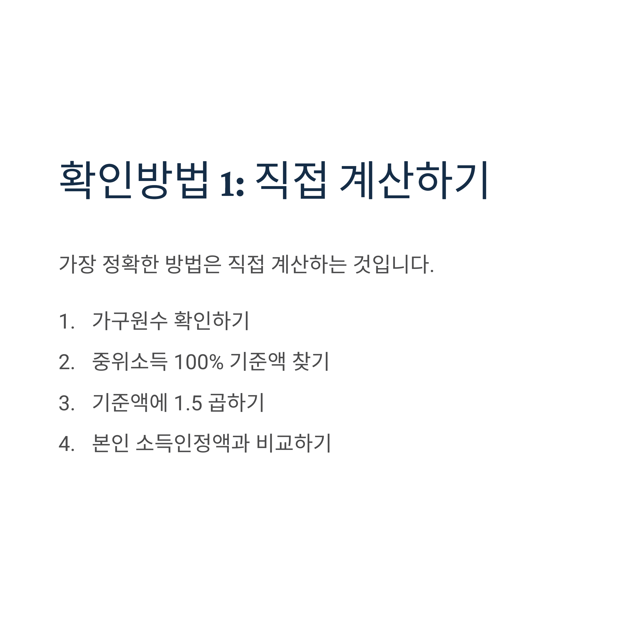 각종 지원제도 기준인 150% 계산은 기준 금액에서 단순히 곱해주시면 됩니다. 가구원수별 중위소득 100% 기준액 × 1.5로 계산하면 됩니다.