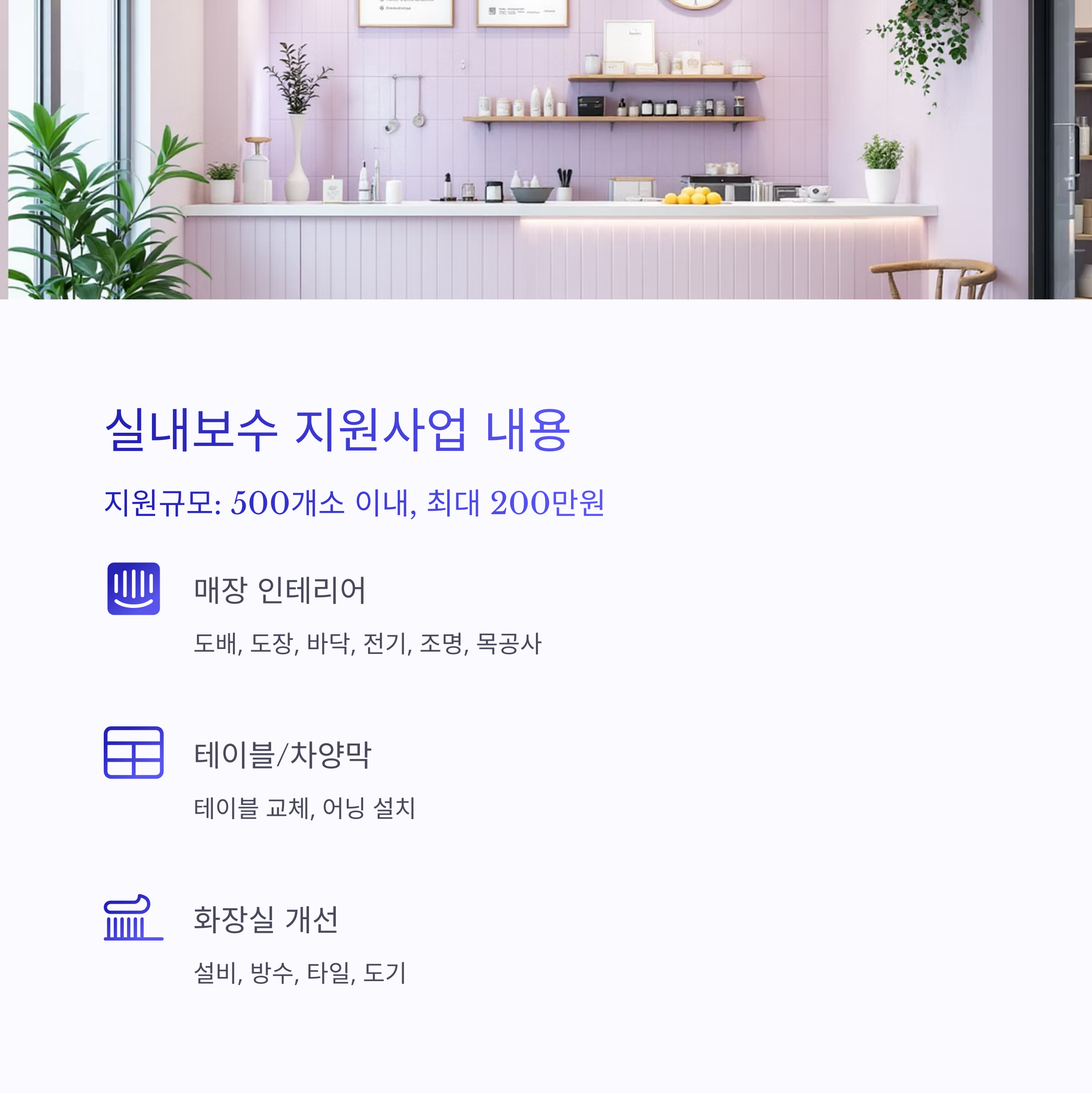 - 화장실 개선은 점포 실내 위치 시에만 가능
