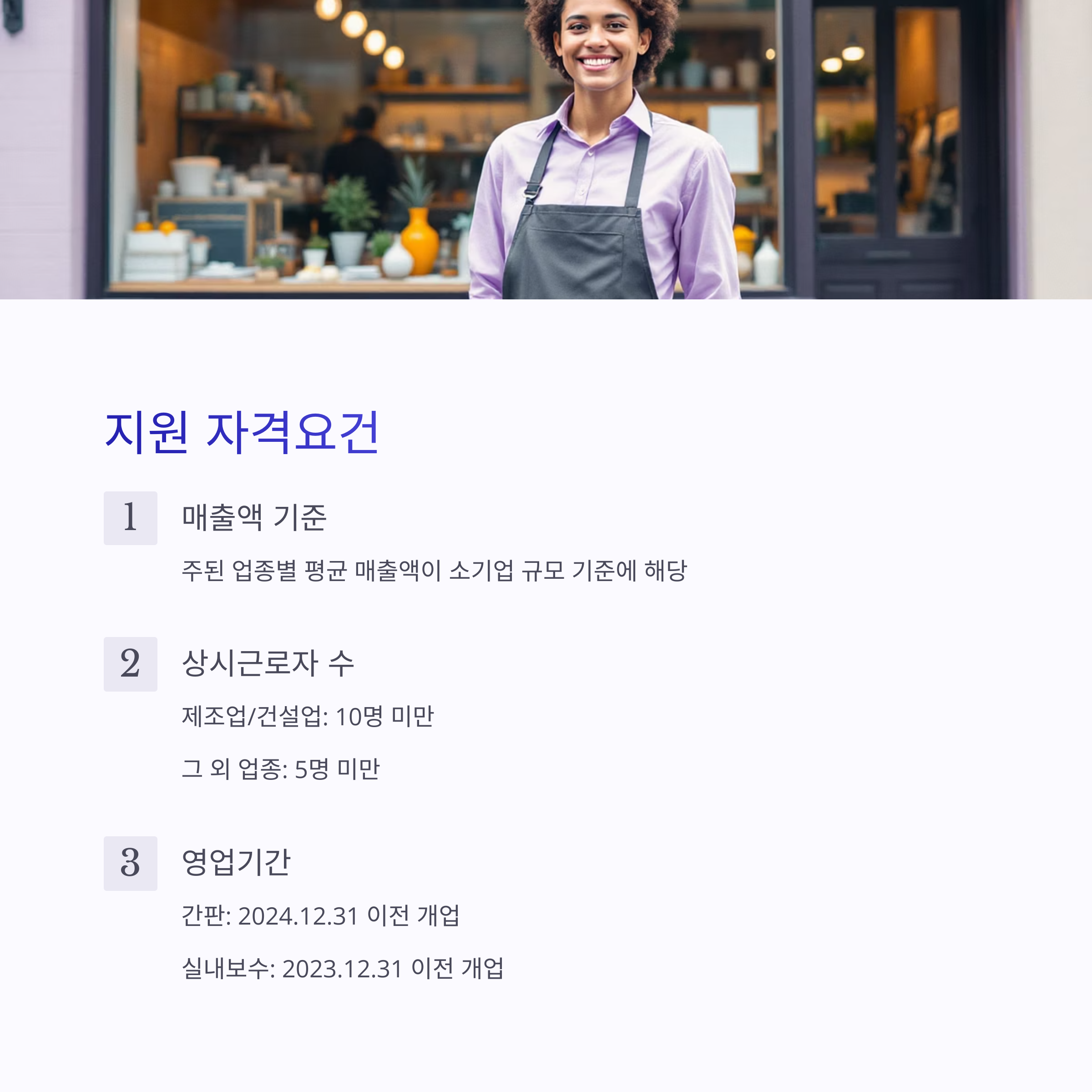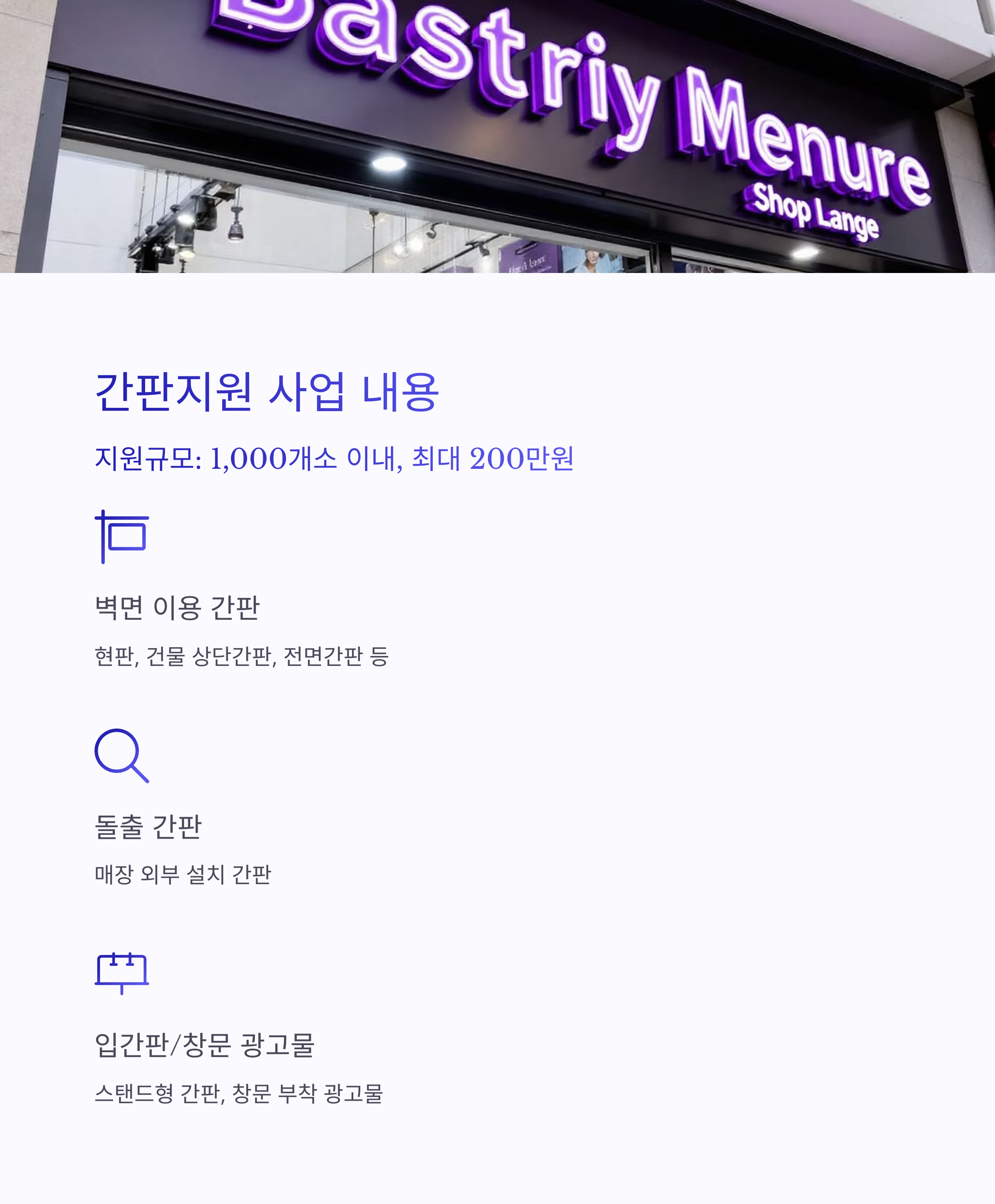 • 간판지원: 2024.12.31. 이전 개업하여 정상 영업중인 자