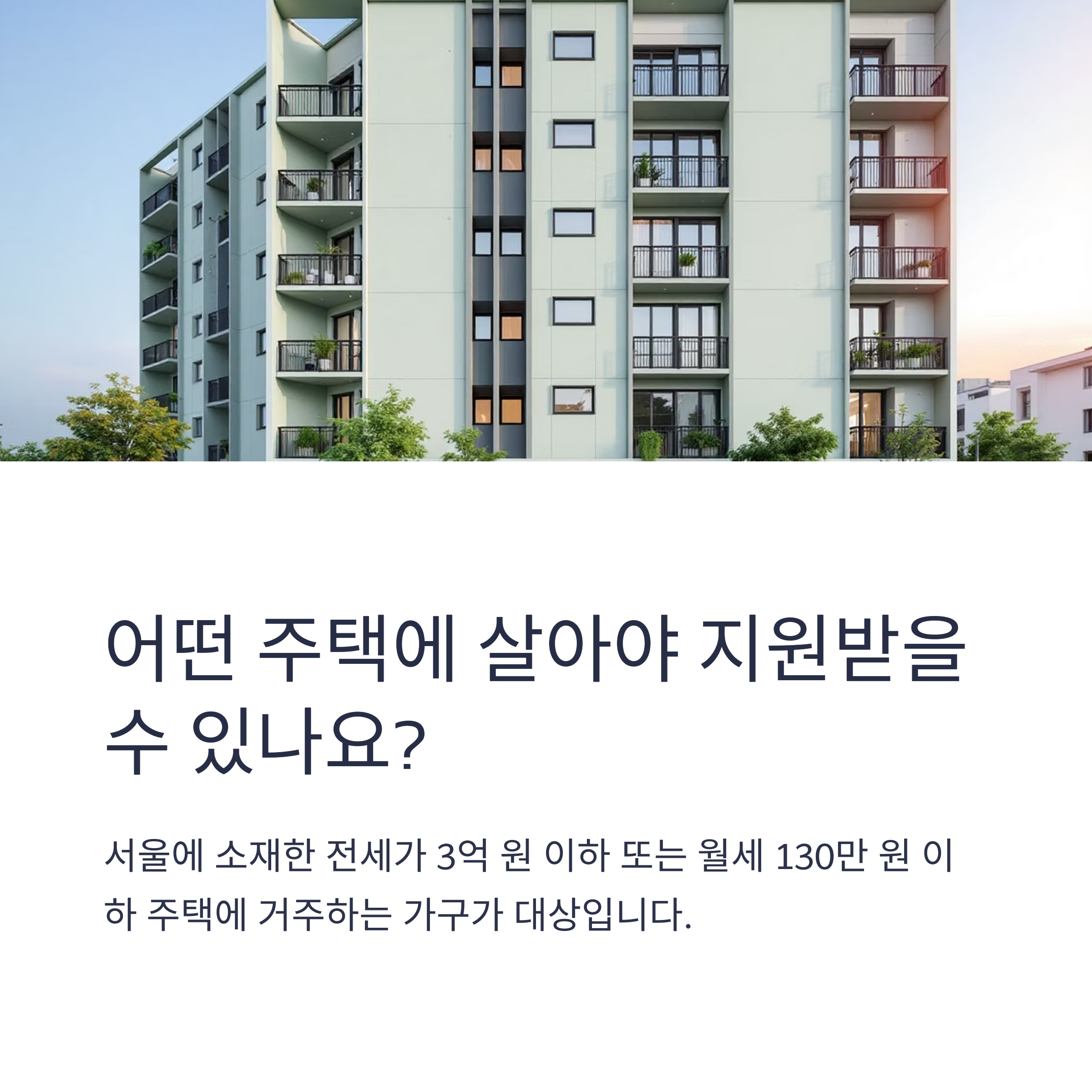 - 서울에 소재한 전세가 3억 원 이하 또는 월세 130만 원 이하 주택에 거주