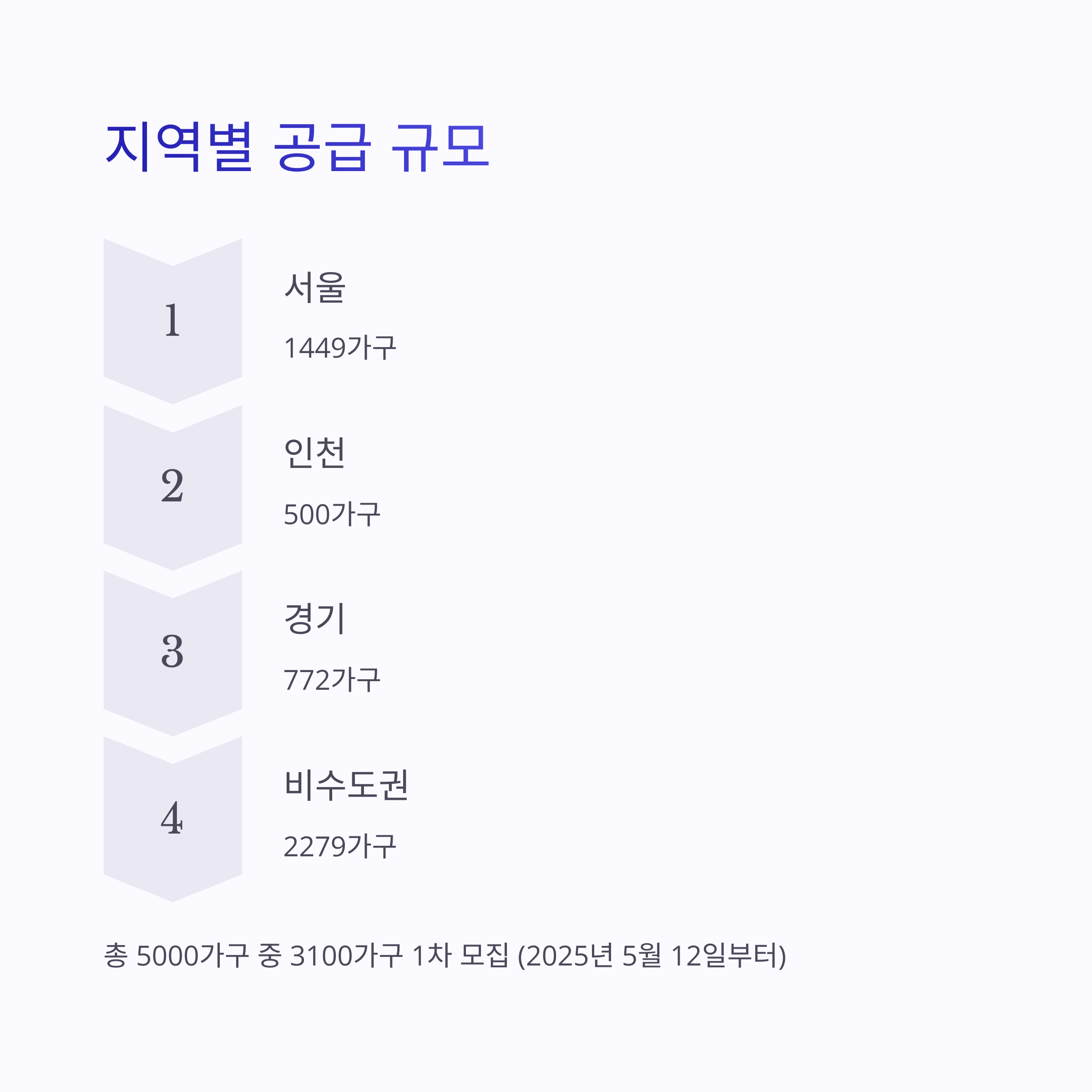 공급 가구는 수도권과 지방을 포함한 전국 3100가구이며, 올해 전체 공급 목표는 5000가구입니다.