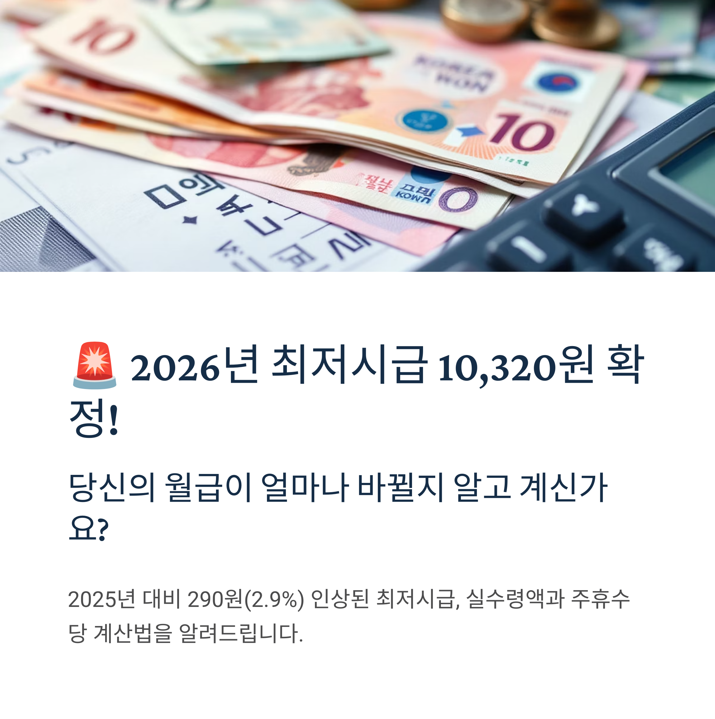 🚨충격! 2026년 최저시급 10320원으로 확정, 당신의 월급이 바뀝니다!