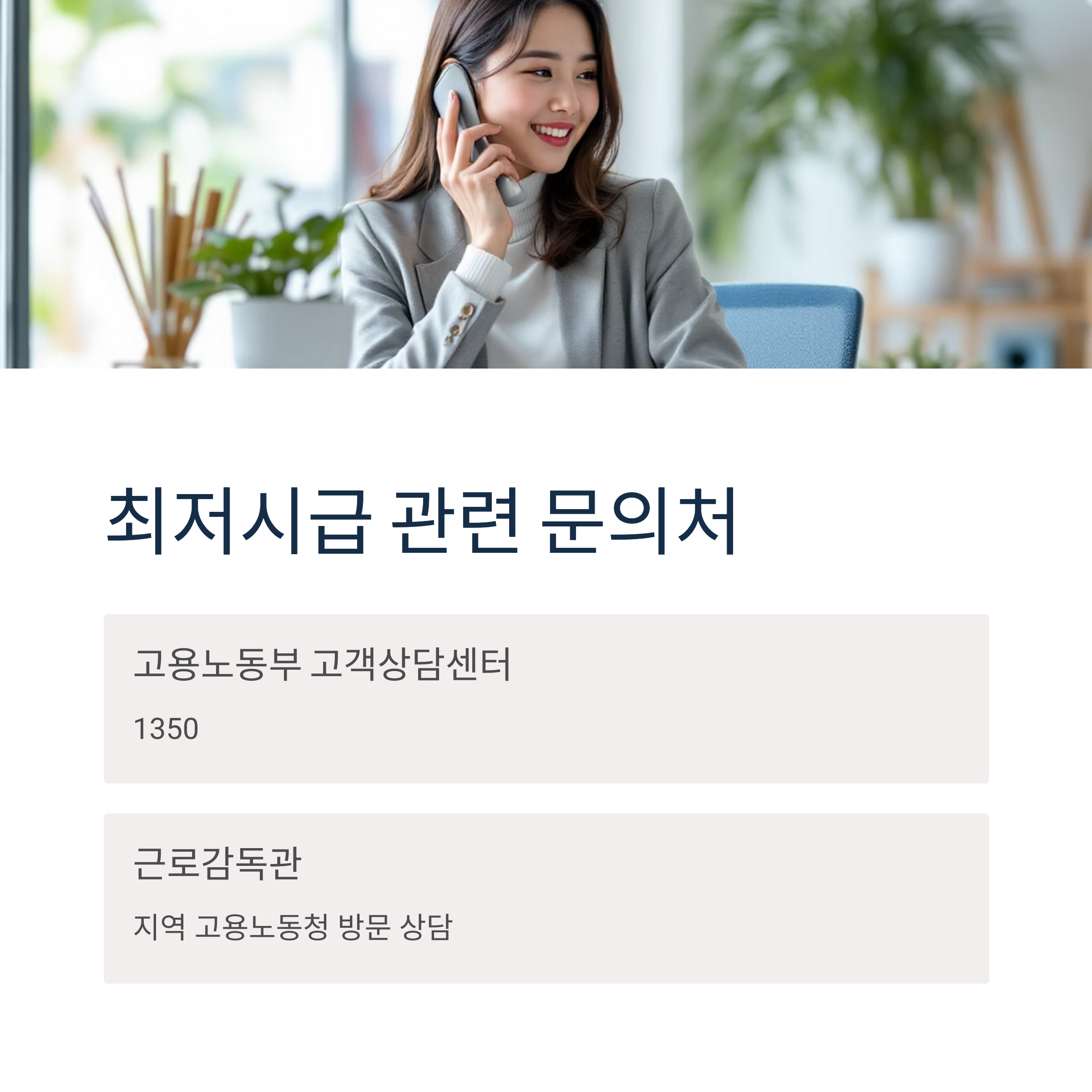 2026년 최저시급 10320원 확정으로 근로자들의 생활 안정성이 한층 높아질 것으로 기대됩니다. 정확한 급여 계산과 주휴수당 지급 여부를 반드시 확인하시기 바랍니다. 최저시급 관련 문의는 고용노동부 고객상담센터(1350)를 통해 가능합니다.