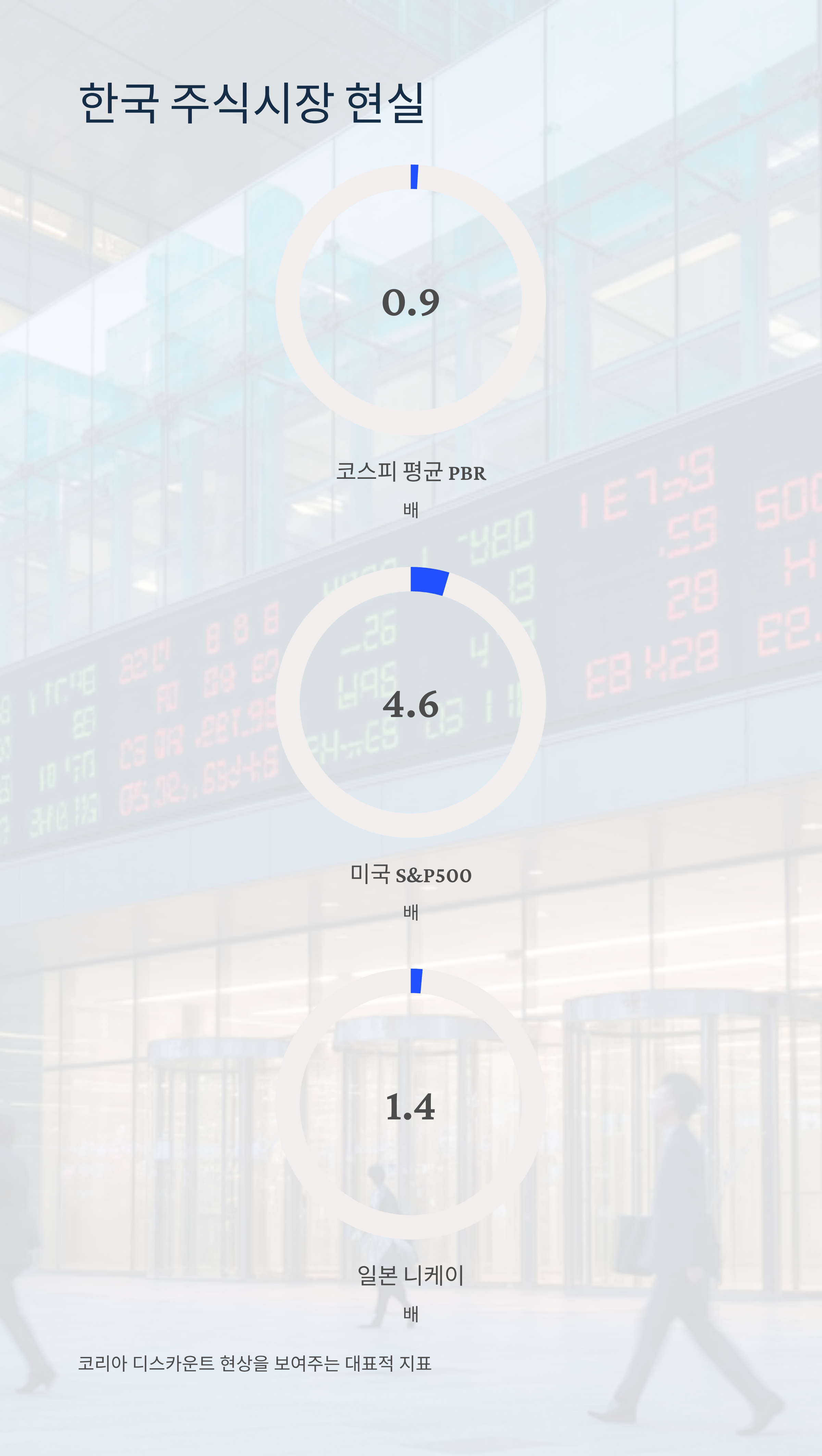 현재 코스피 상장사의 평균 PBR은 0.9배로, 이는 이른바 '코리아 디스카운트' 현상을 보여주는 대표적인 지표입니다.