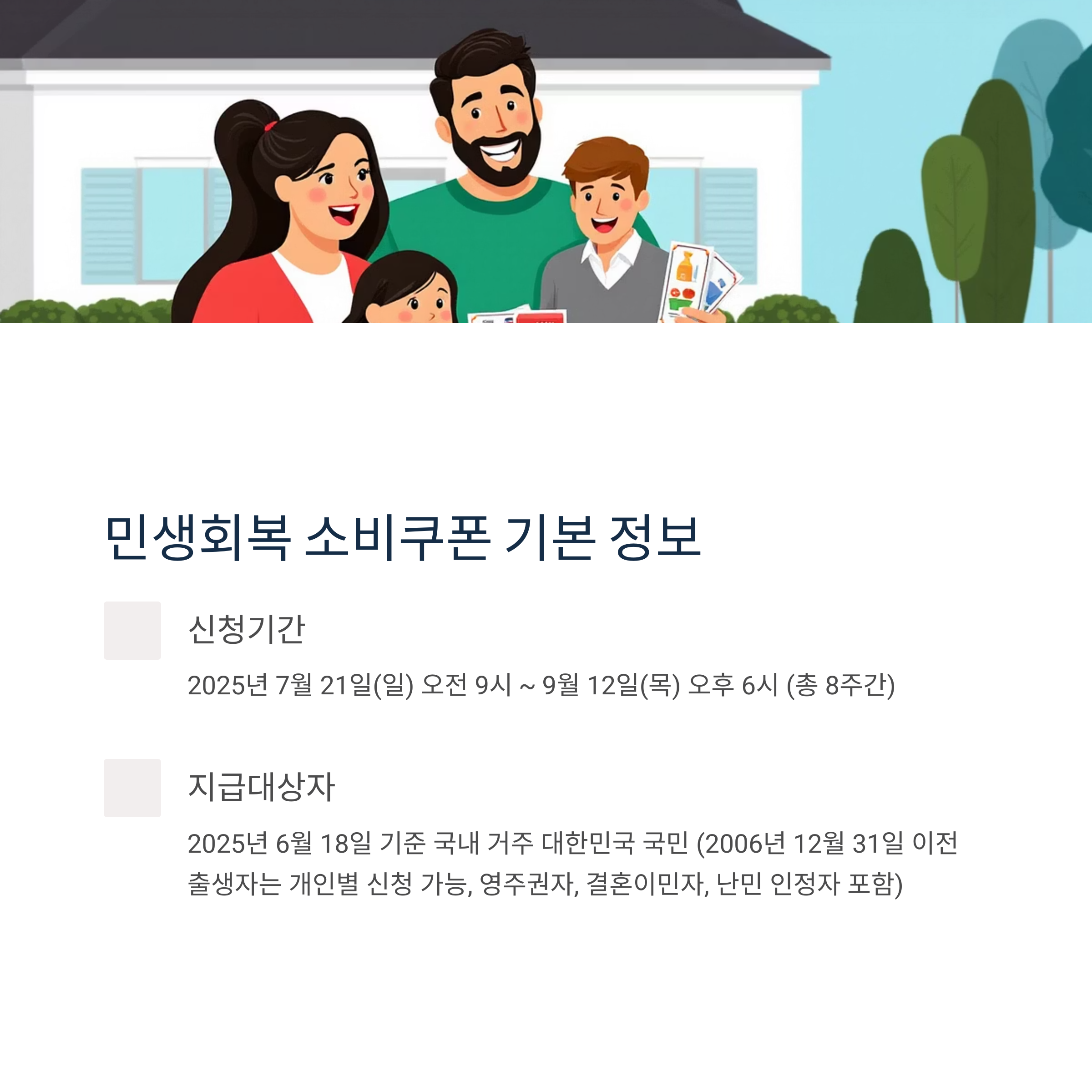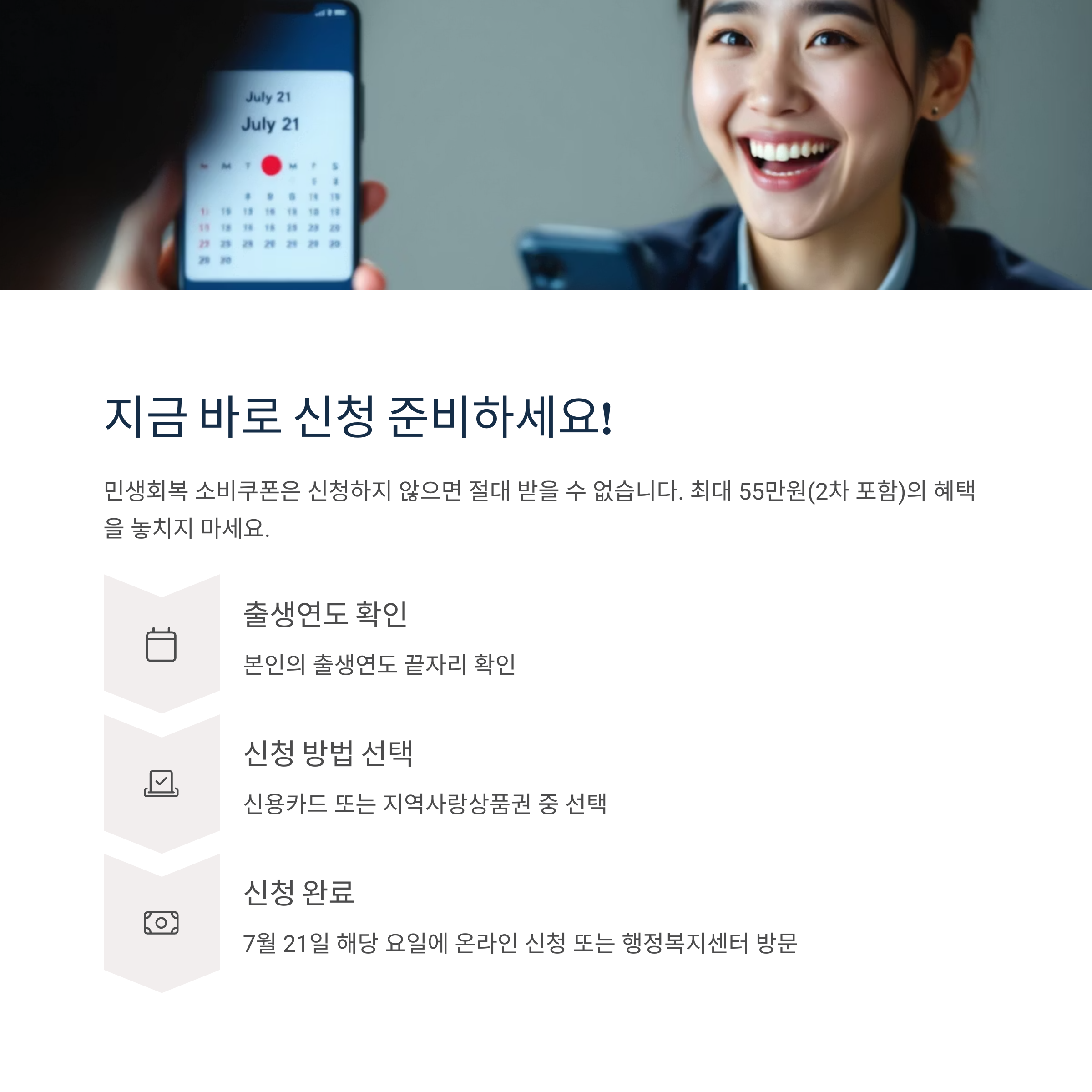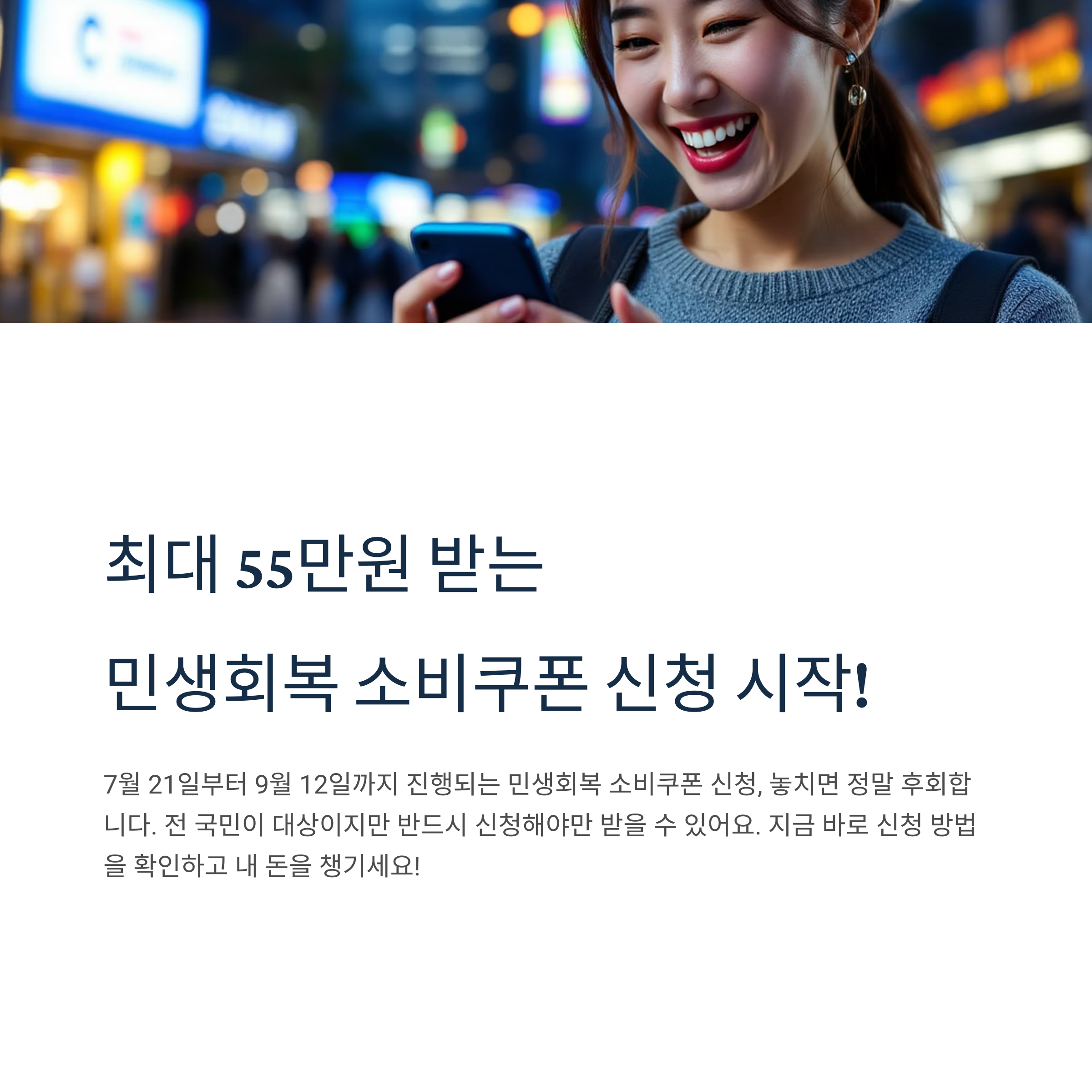 민생회복 소비쿠폰은 신청하지 않으면 절대 받을 수 없습니다. 최대 55만원의 혜택을 놓치지 마시고, 반드시 9월 12일 이전에 신청하시기 바랍니다!